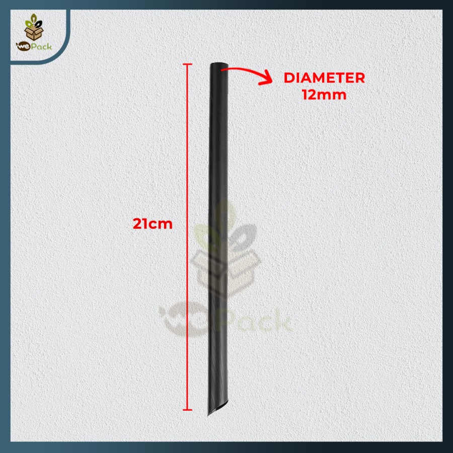 Sedotan Plastik Boba Hitam Steril 21cm Higienis Bubble 12mm 100pcs