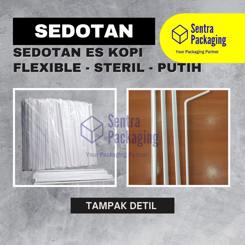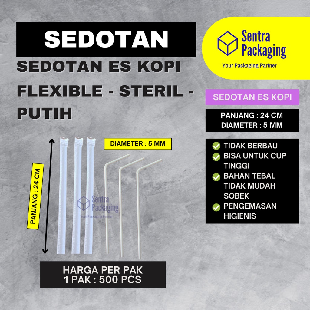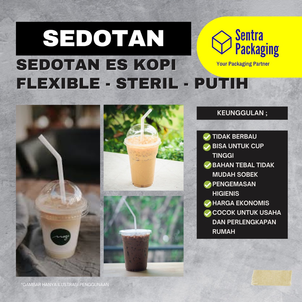 Sedotan Plastik Flexible PUTIH dibungkus Kertas Putih 500pcs / FW-524-WP / Sedotan Es Kopi / Cafe / Steril / Bengkok / Tekuk