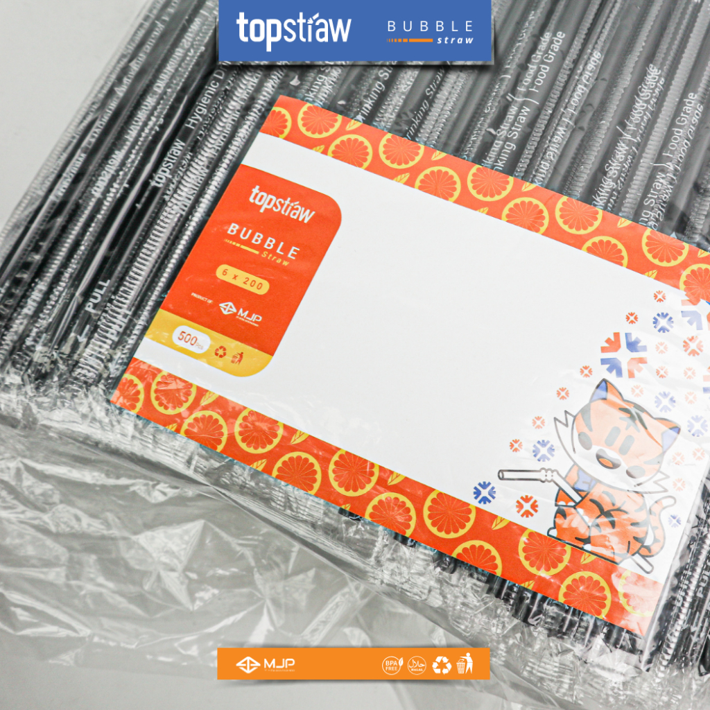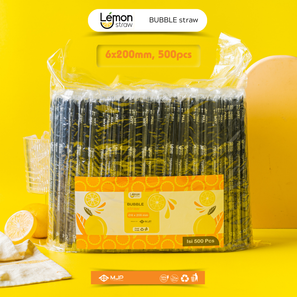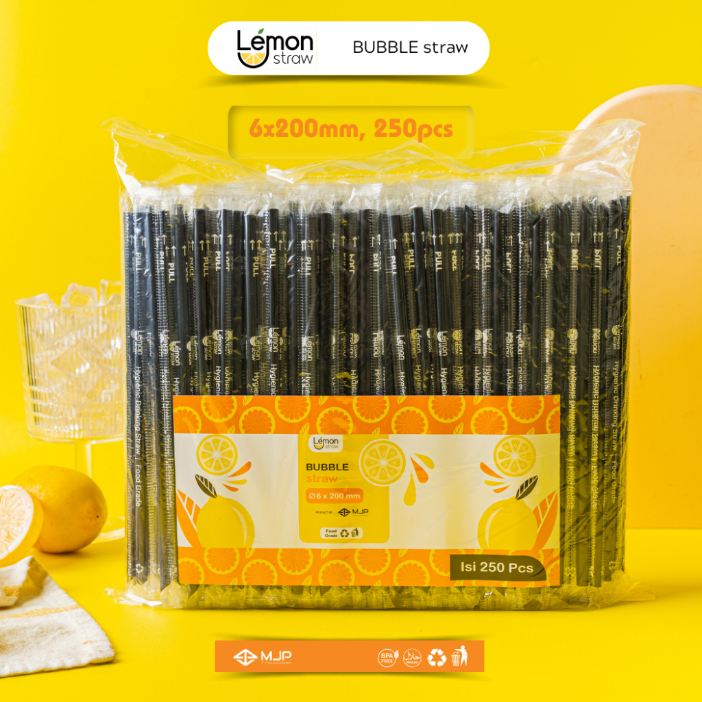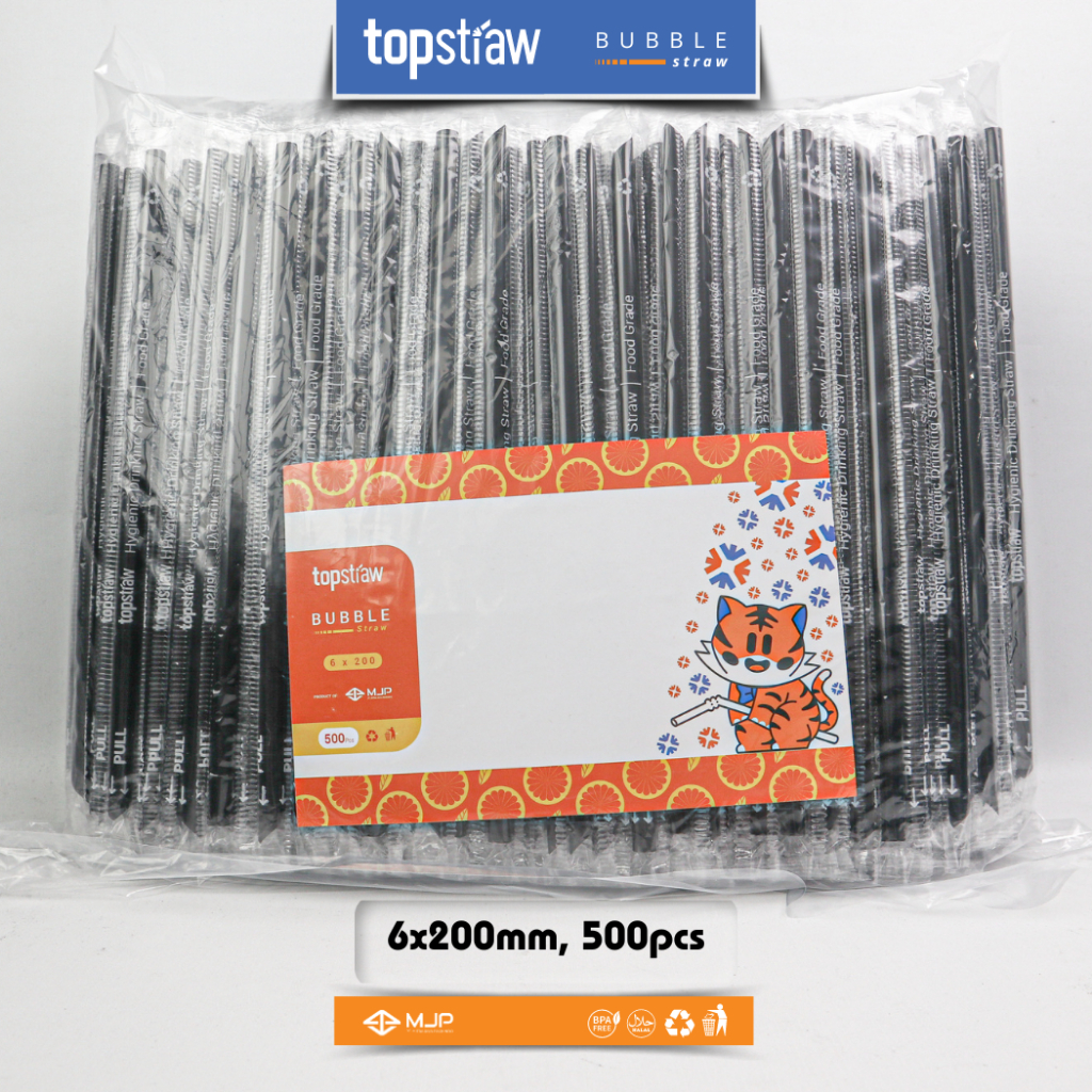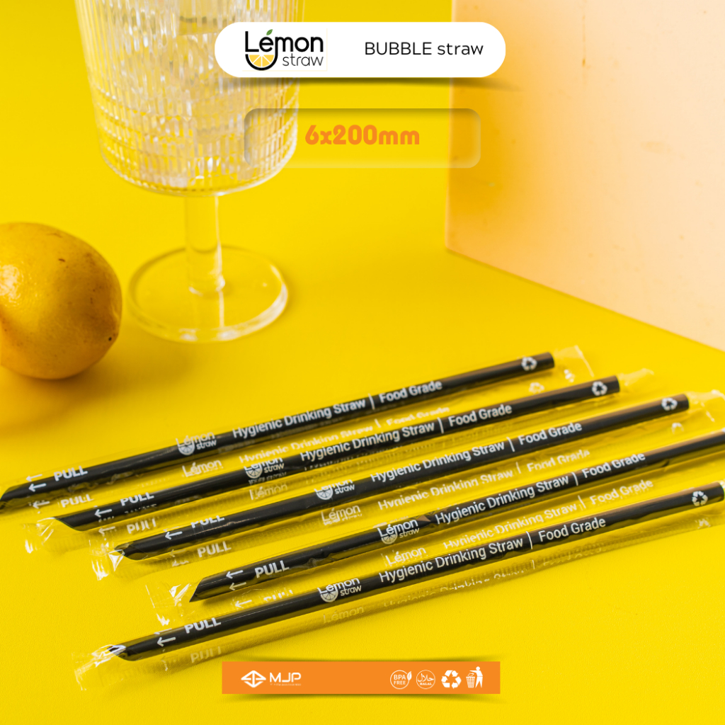 Sedotan Runcing Steril Hitam Bungkus Plastik Sedotan Kopi 620 6x200mm