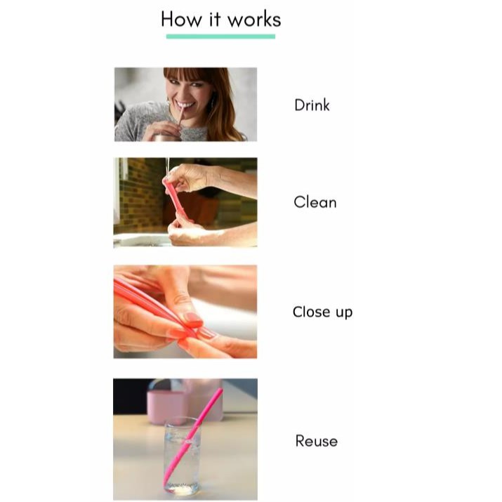 Sedotan Silikon 3 size pilihan - Silicone Straw Lipat Buka Tutup