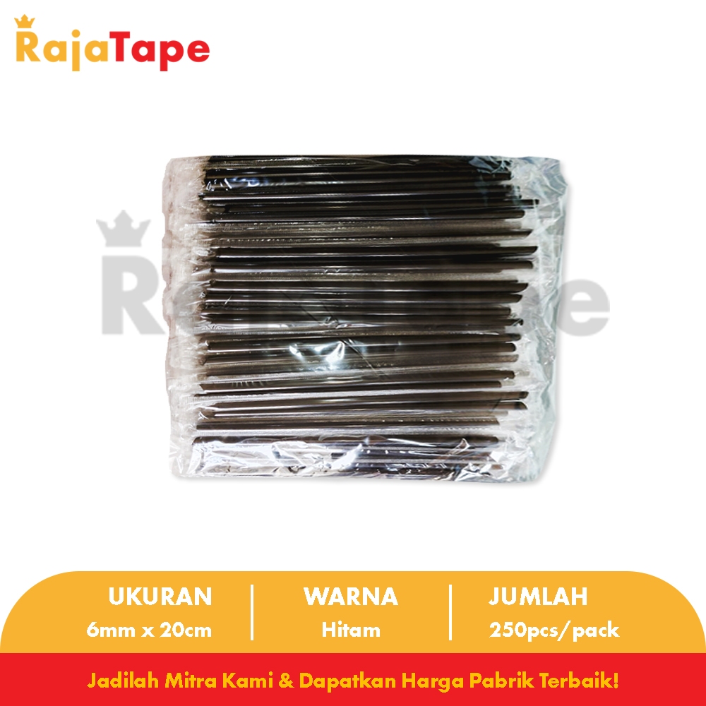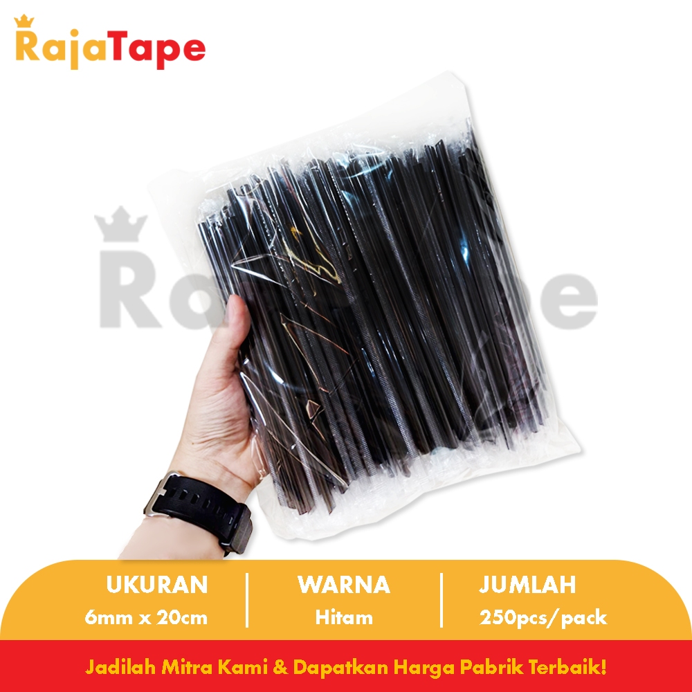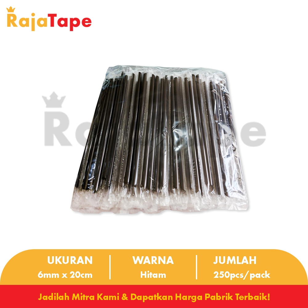 Sedotan Steril 6mm x 20cm Hitam / Sedotan Kopi Hitam Runcing / Sedotan Lancip Isi 250 Pcs RAJA TAPE