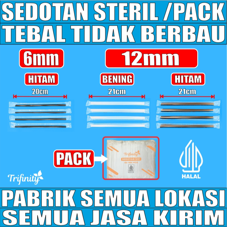 Sedotan Steril Tebal 1.9gr Bubble Higienis 1221 12mm Bening Hitam / Teh Poci 620 6mm Runcing PackJSP