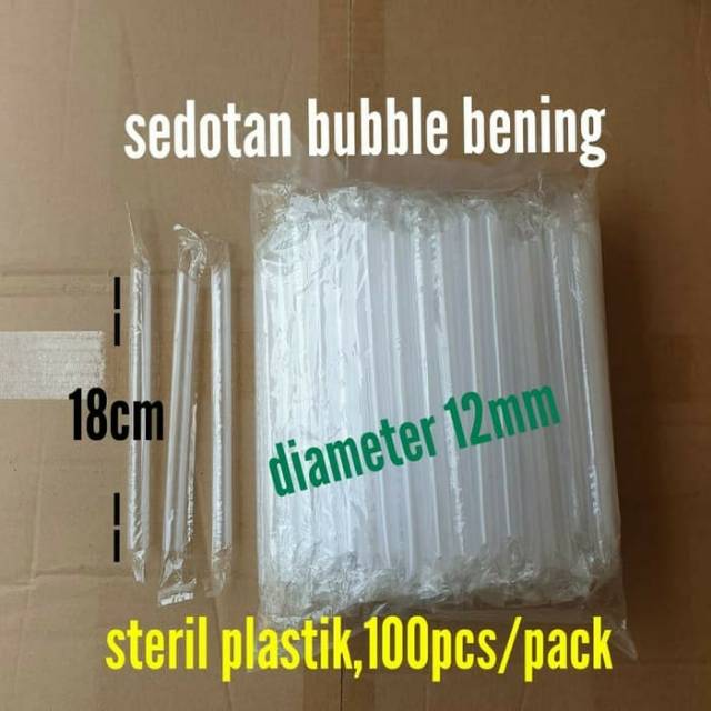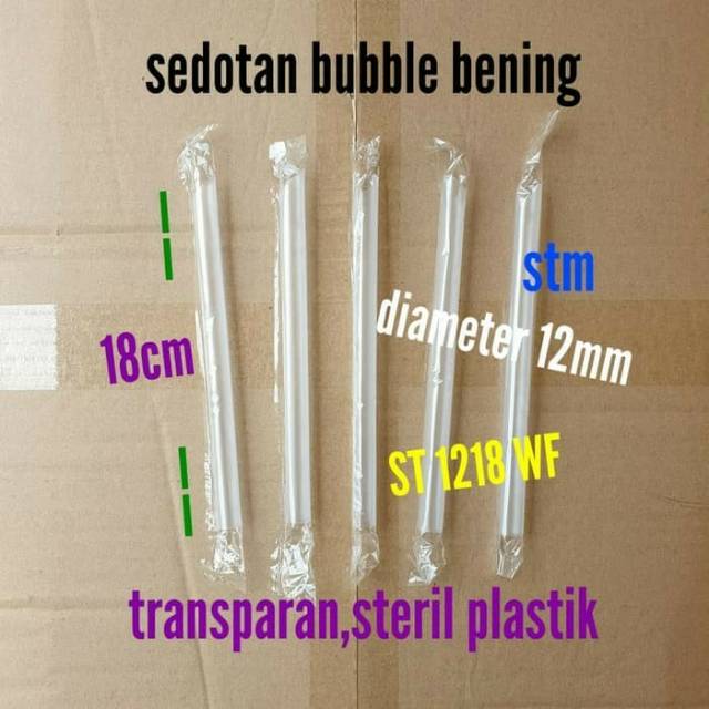 Sedotan bubble besar steril 1218 bening/sedotan jelly lancip bungkus plastik/hygienic drinking straw