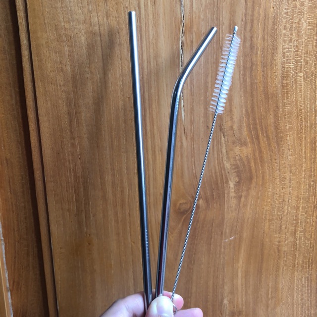 Sedotan stainless set (sedotan lurus+bengkok+sikat)