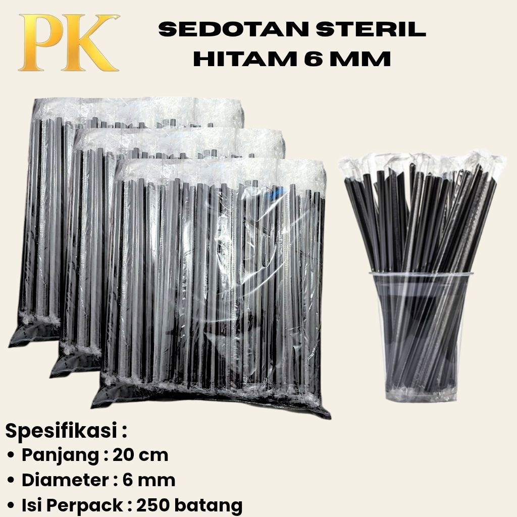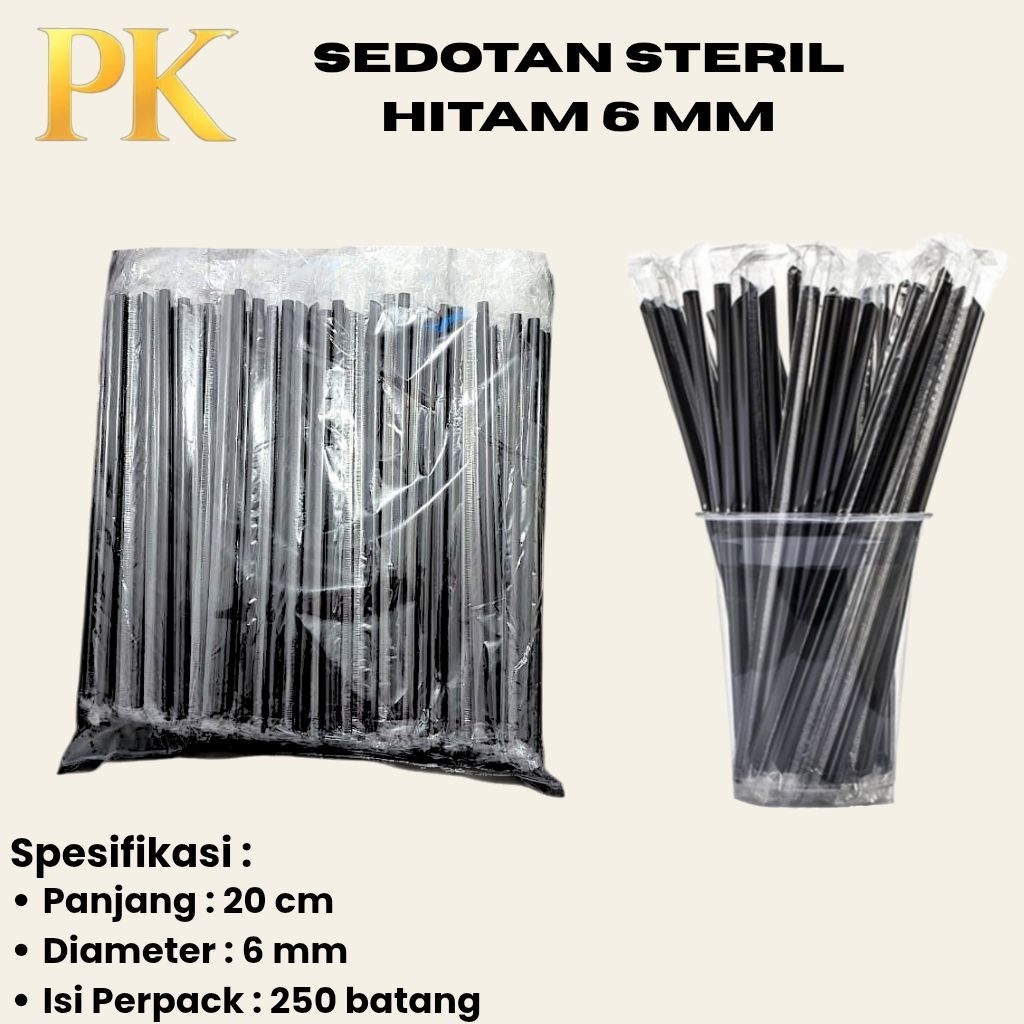 Sedotan Plastik Steril Hitam 6 Mm 20 Cm Lancip Higienis Minuman Es Teh Pop Ice Kopi ISI 250 PCS