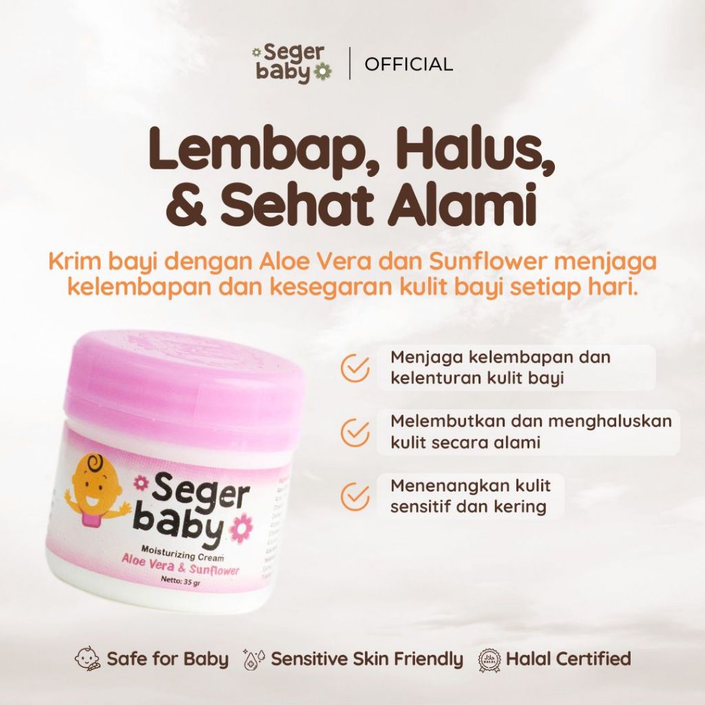 Seger Baby Moisturizing Cream Aloe Vera & Sunflower 35gr Baby Lotion Krim Bayi Melembabkan & Menghaluskan Kulit Bayi