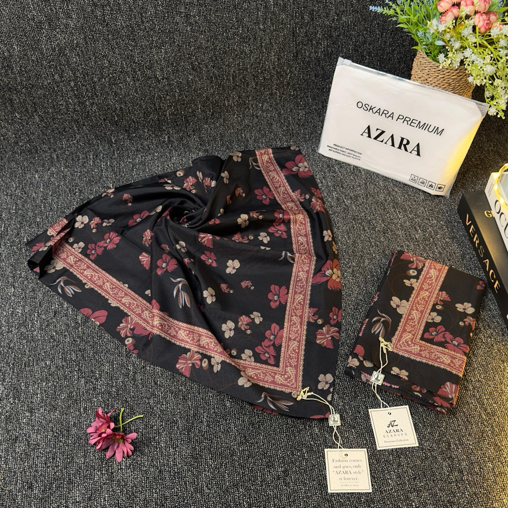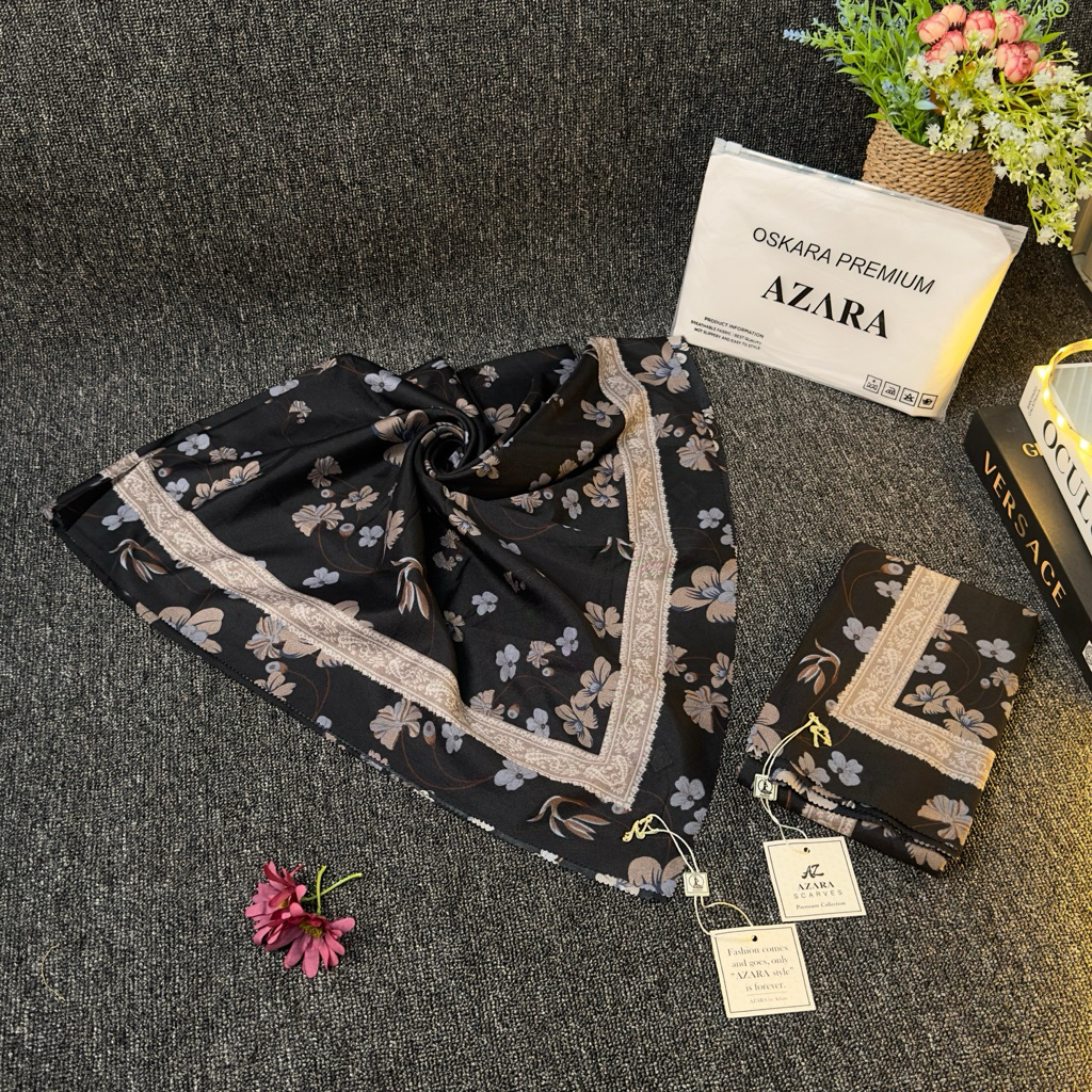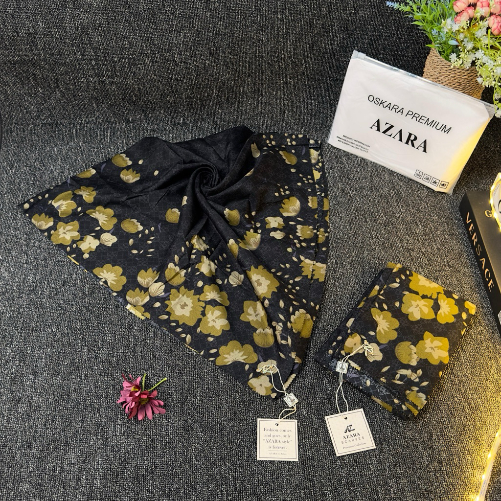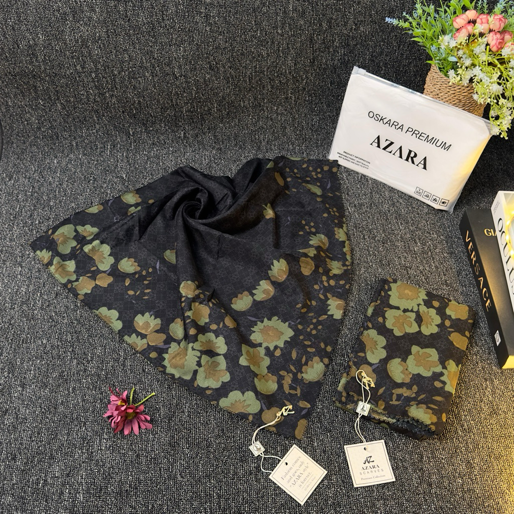 Segiempat Azara Motif Senorita Olive Voal Dasar Hitam Black Edition Pouch