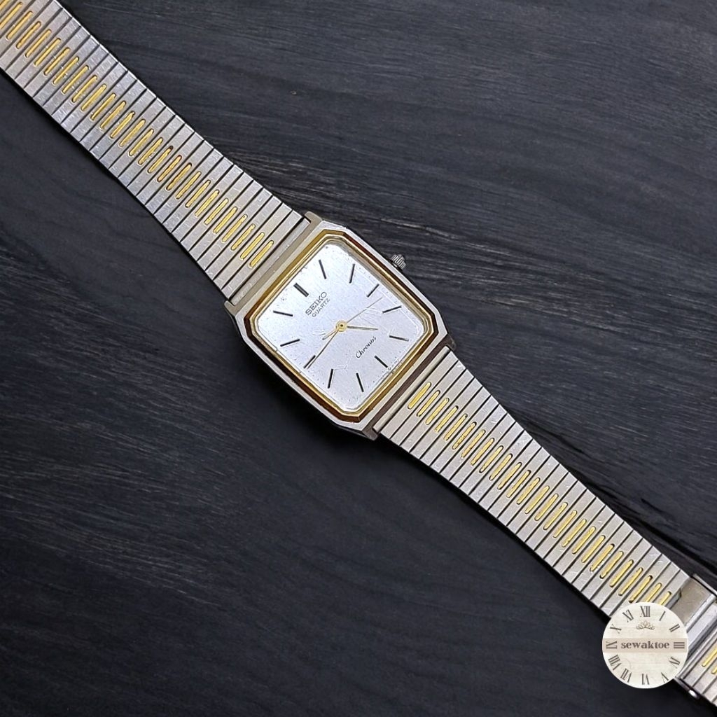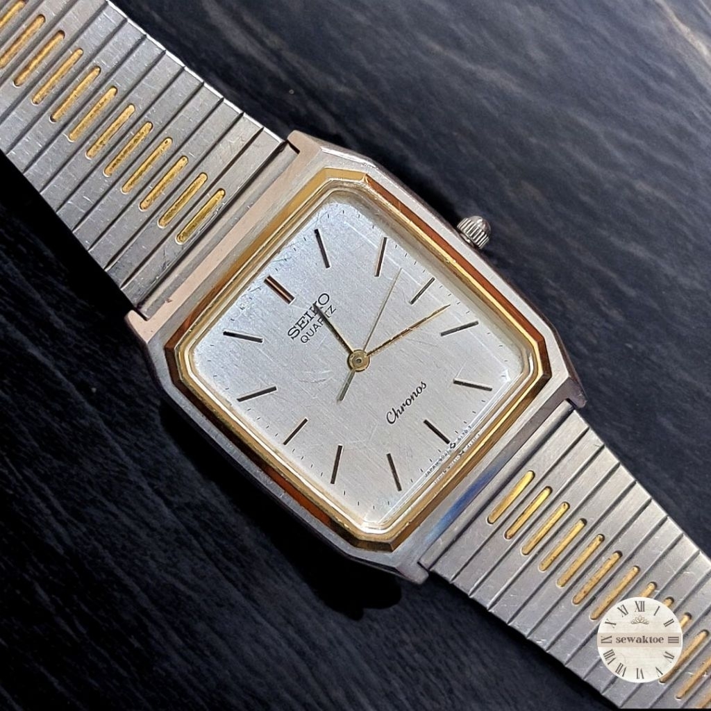 Seiko Chronos Tank Two Tone Linen Dial 1984 Vintage All Original - Seiko Tank