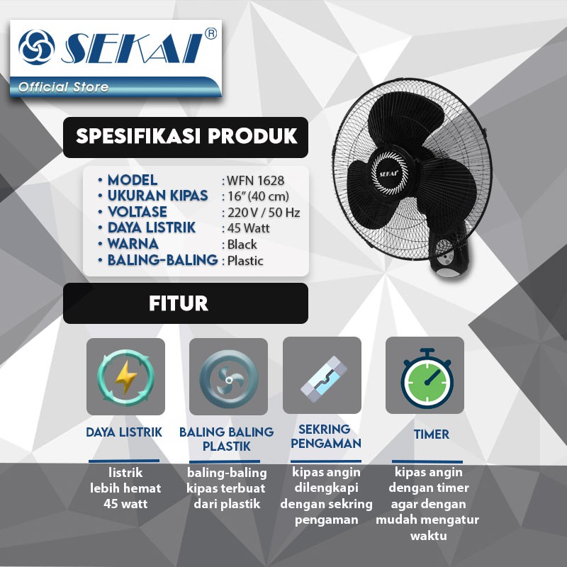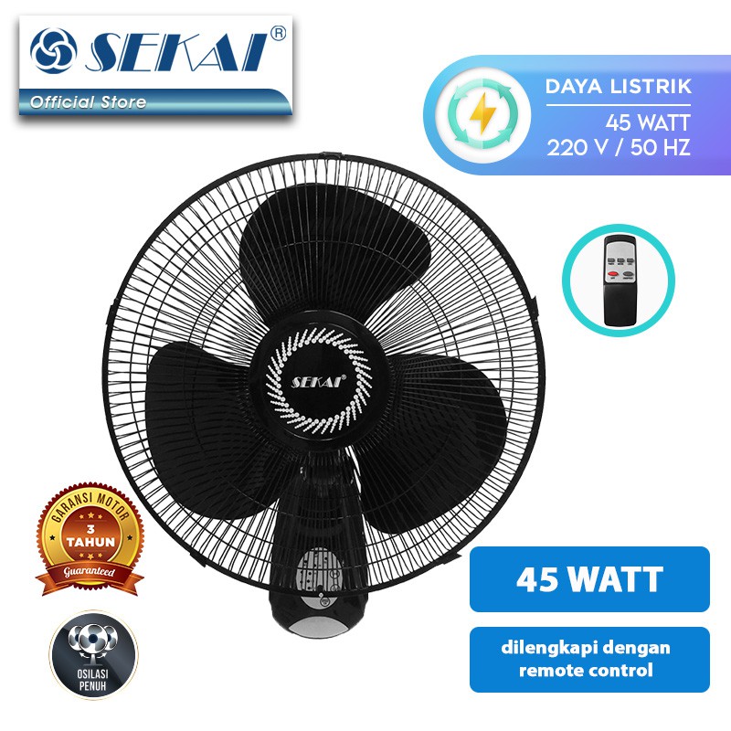 Sekai Kipas Angin Wall Fan WFN-1628R Remote