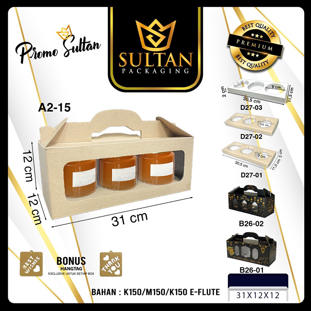 Sekat Dus Box - Sekat Hampers - Inner Dus Toples 3 Lubang Diameter 9 cm - D27