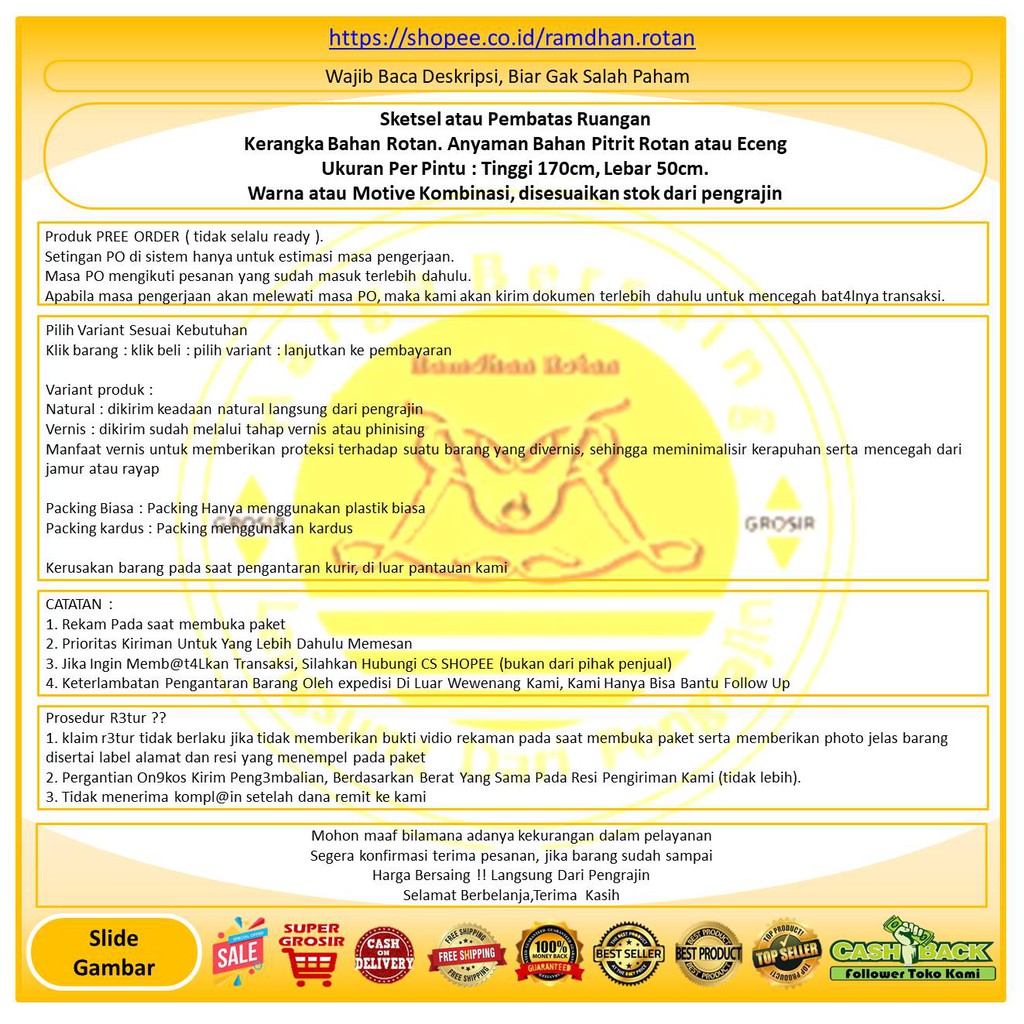 Sekat Rotan 4 Pintu - Sekat Ruangan Pintu 4 Keping Bahan Rotan - Skat Rotan 4 Daun Pintu