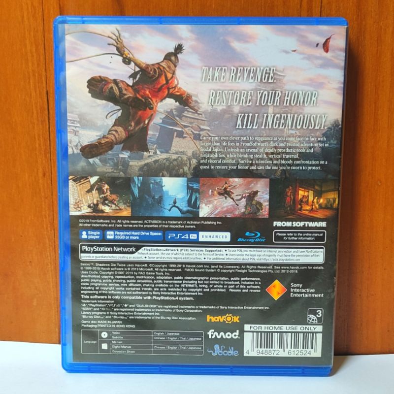 Sekiro Shadows Die Twice PS4 Sekiro Shadow Died Twice Playstation PS 4 5 Ninja Samurai CD BD Game Games Original Asli Sekiro PS4 PS5 Ghost of tsushima reg 3 region asia