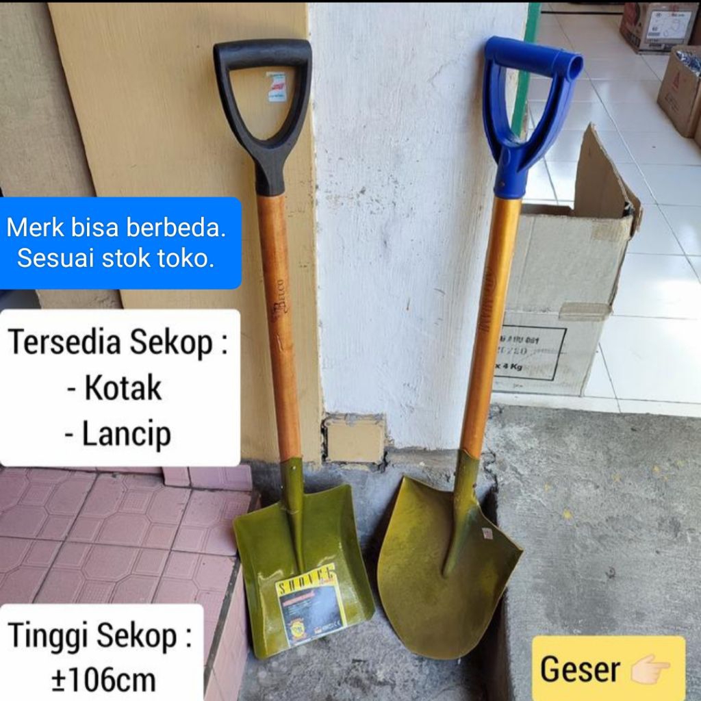 Sekop skop Galian Pasir Semen Kotak Rata Lancip Runcing Gagang Kayu Skop Bangunan