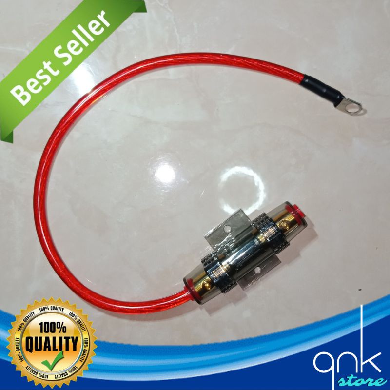 Sekring Tabung 60A Plus Kabel 8 Awg 100cm Plus Scun Tembaga Sekring Tabung Fuse Audio Berkualitas