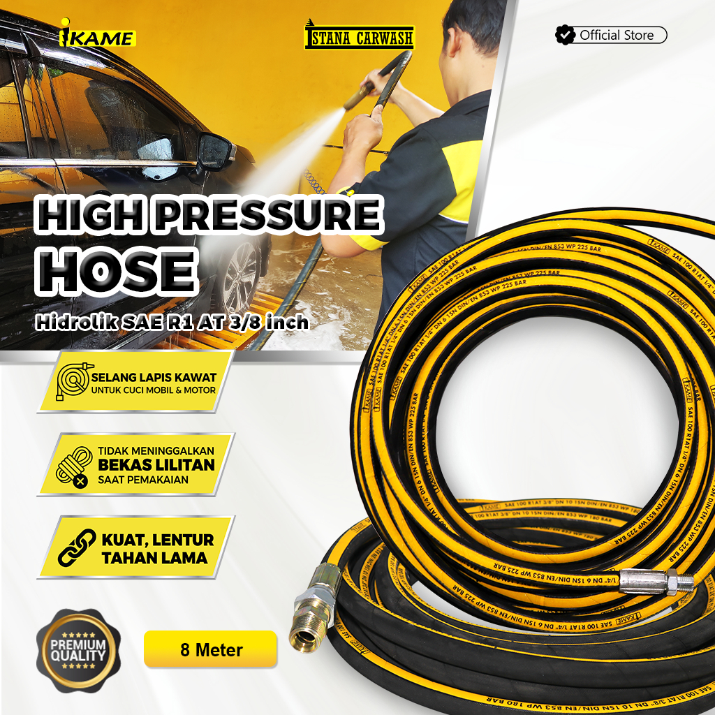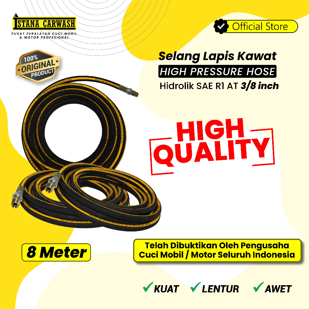 Selang High Pressure Cuci Mobil Motor Lapis Kawat 3/8 Inch 8 Meter ( VMP, CNP, GRUNDFOS )