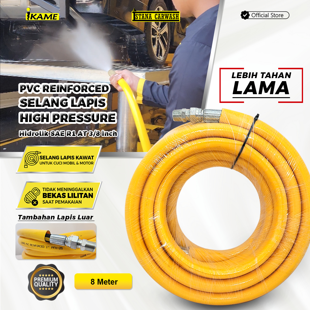 Selang Cuci Mobil Motor High Pressure R1 ukuran 3/8 inch, Lapis Luar ( 8 Meter ) ikame