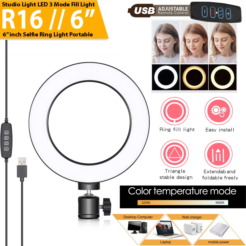 Selfie Ring Light 6"inch 16cm Lampu Ring LED