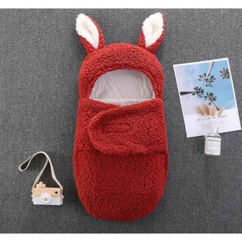 Selimut Bedong Bayi Bulu Tebal Karakter Kelinci Newborn Premium