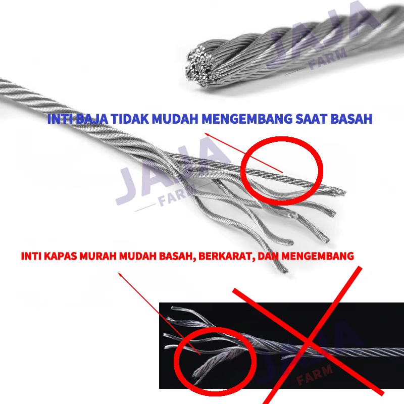 Seling Baja (roll) 1.5mm/3mm/4mm/5mm - Kawat Seling Sling Baja Galvanise Wire Rope Untuk Pulley Katrol Handwinch
