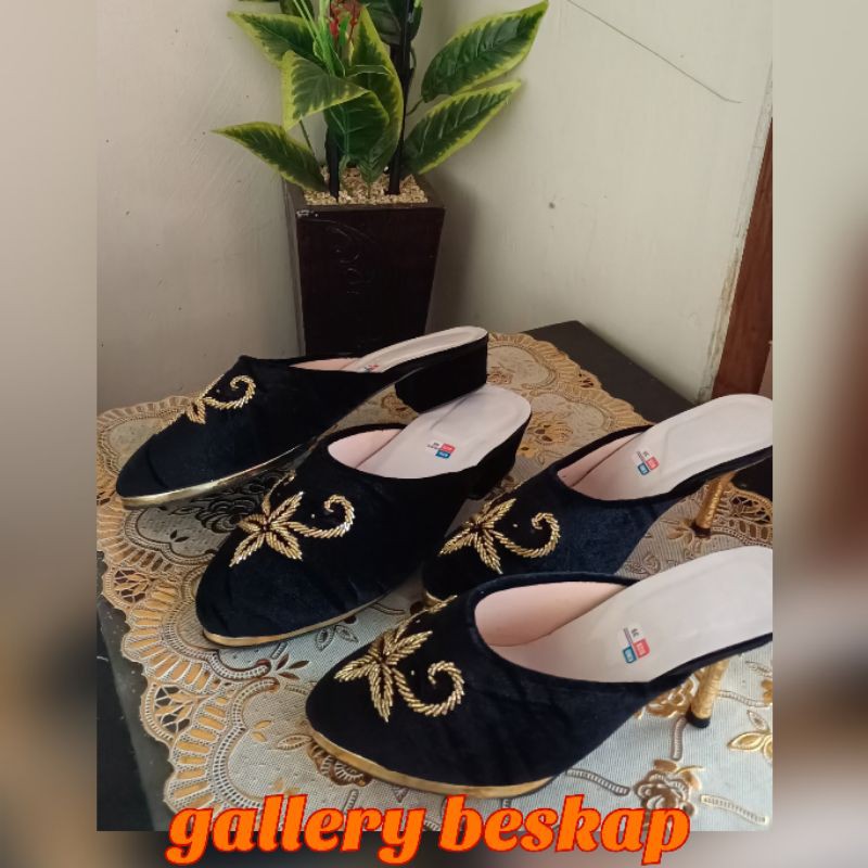 Selop pengantin bludru hitam / sendal manten / slop manten