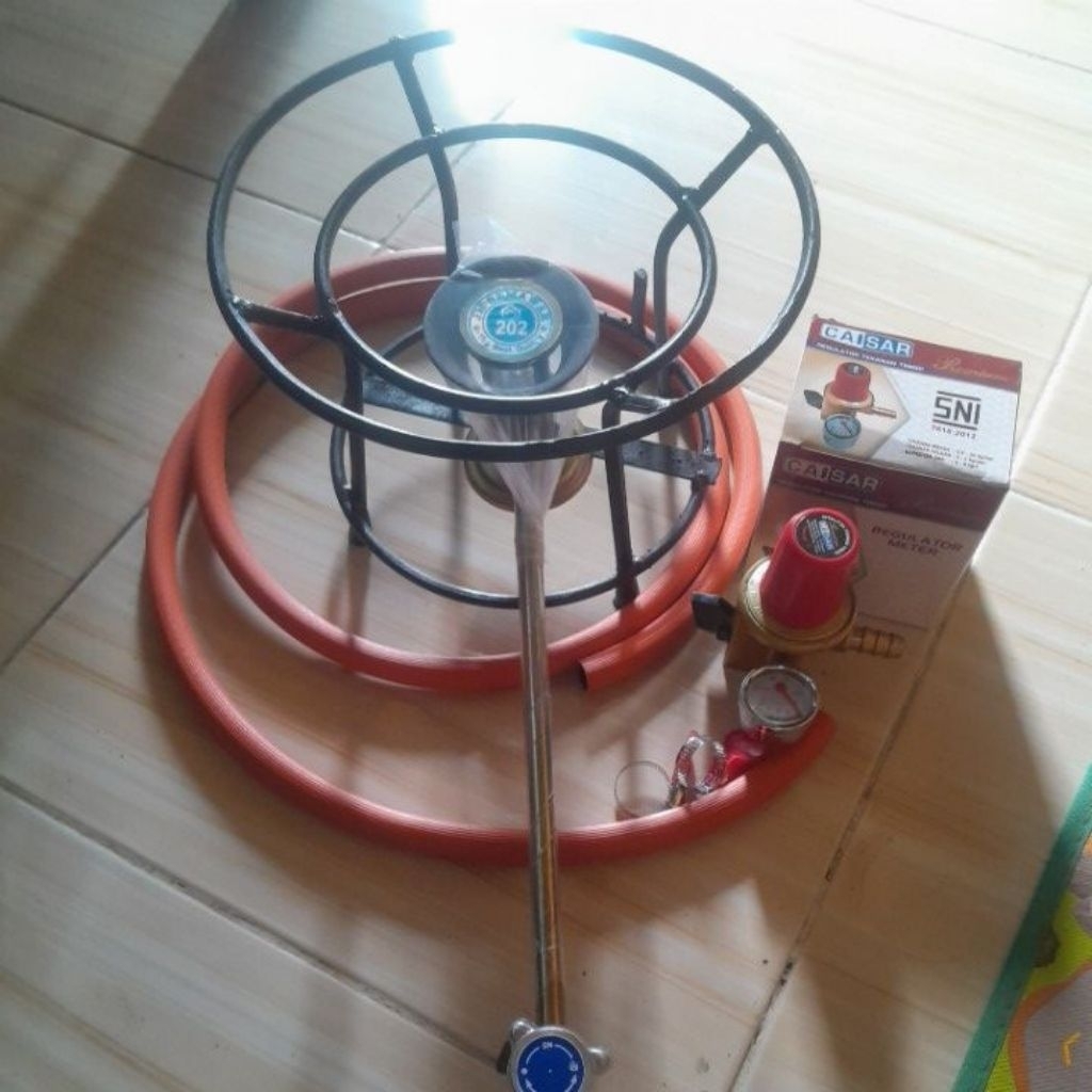 Semawar Paket Komplit Kompor Gas Semawar 202 dan 203 dengan Regulator Tekanan Tinggi Jarum Tekanan Selang Panjang 2 Meter & 2 Klem Selang untuk Memasak Makanan dengan Mudah dan Cepat