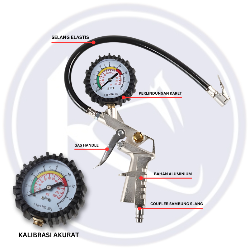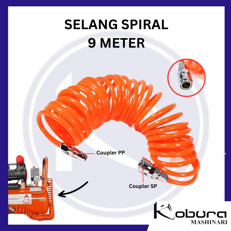 Semprotan Angin Kompresor Set Selang Spiral 9 Meter dan Tire Inflator Gauge Kit Alat Pengukur Tekanan Isi Buang Angin Ban