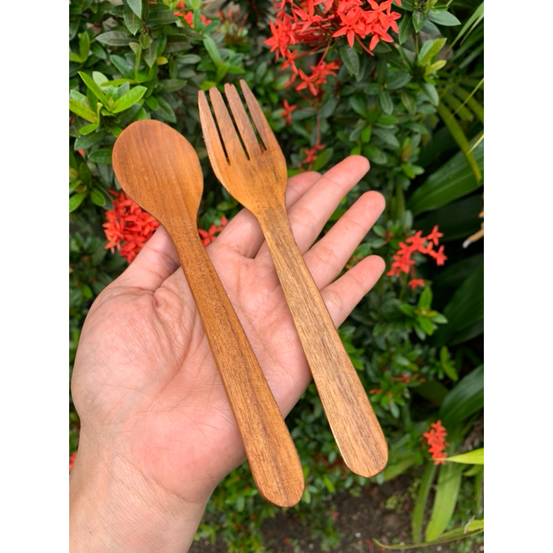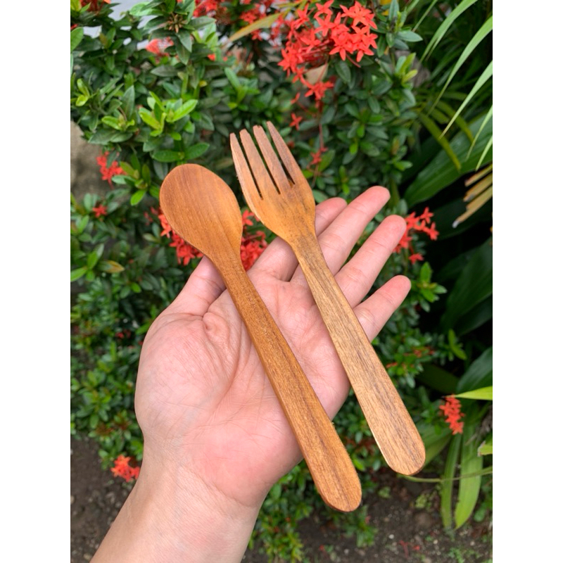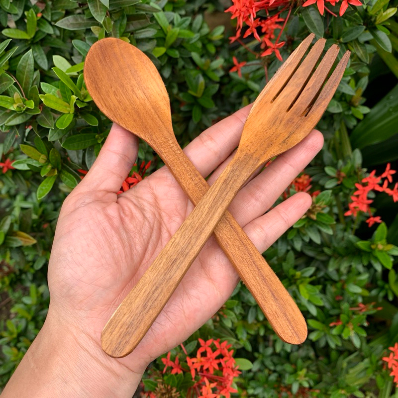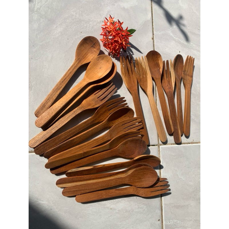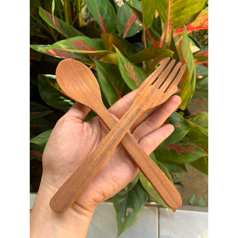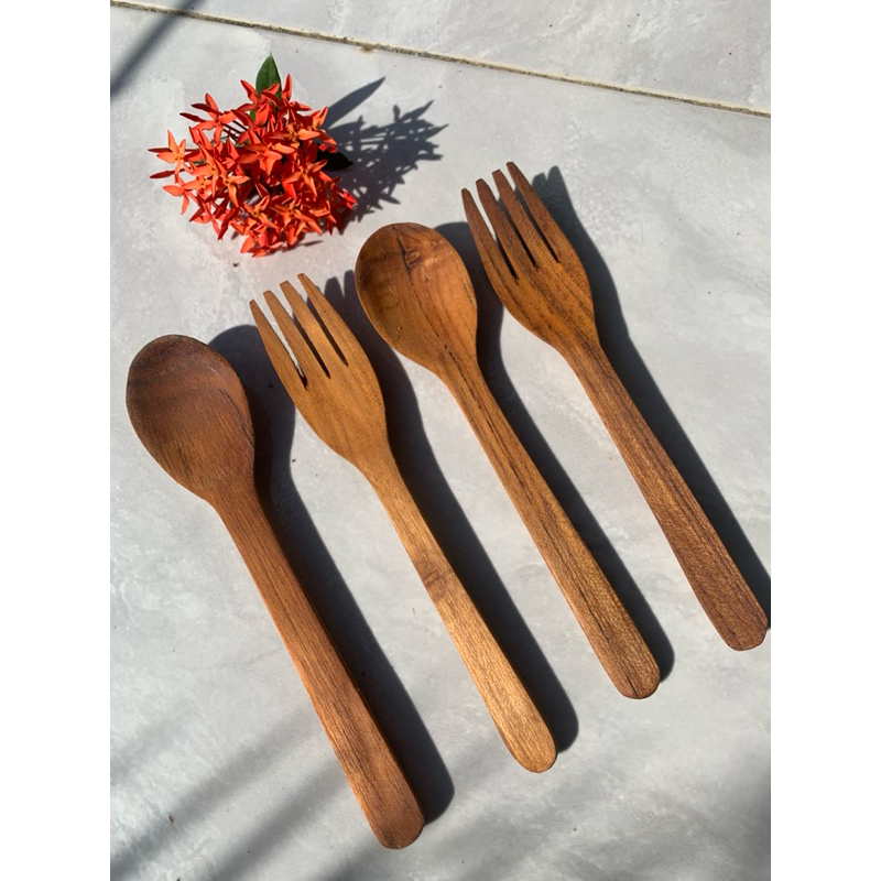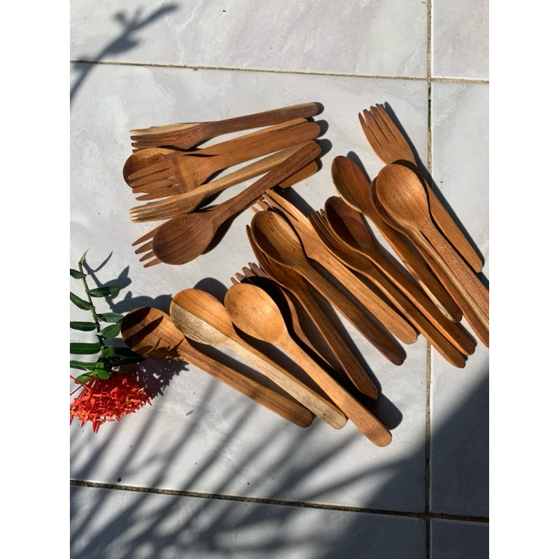 Sendok Garpu Kayu JATI PREMIUM Satu Set Kayu Jati Asli 100%