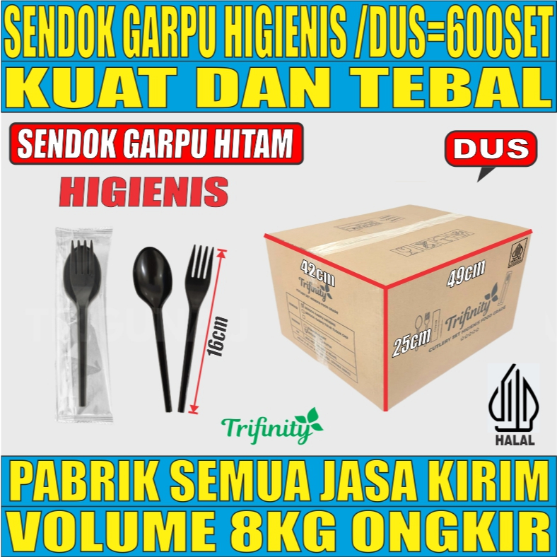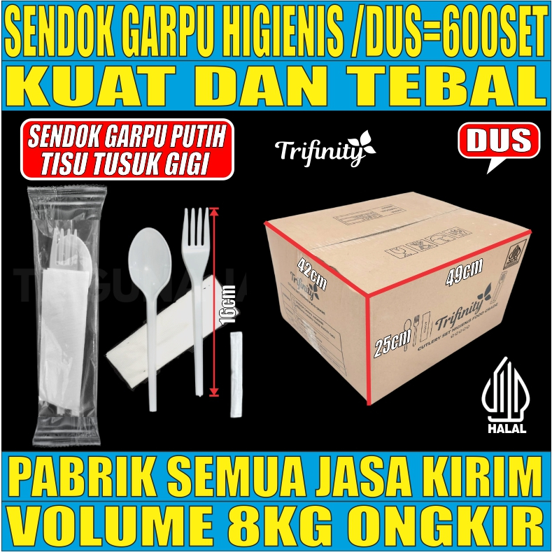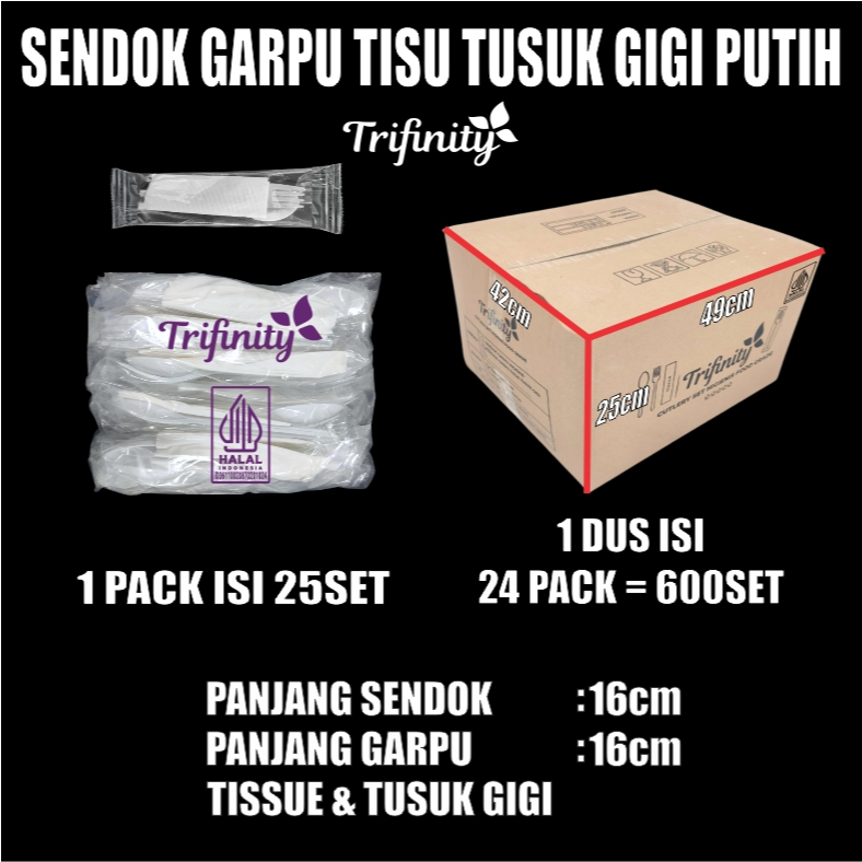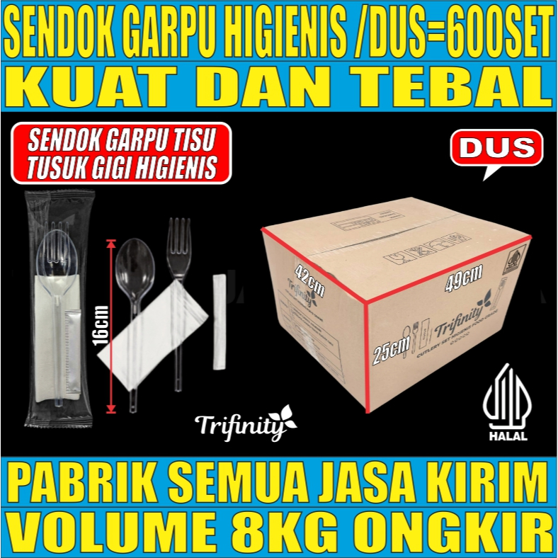 Trifinity Cutlery Set Sendok Garpu Tebal 8gr Steril Kuat Tisu Tusuk Gigi Higienis Bening Dus JSK