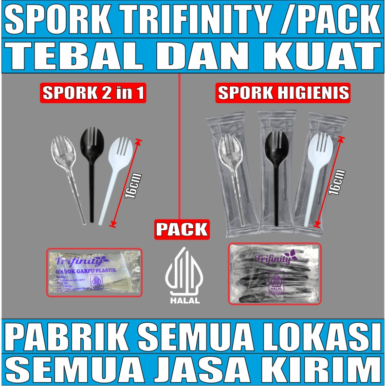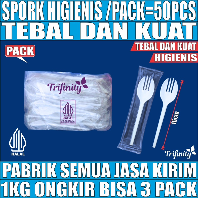 Spork Higienis Tebal 3.3gr Kuat 2in1 Bening / Putih / Hitam Pack Bungks Plastik Steril Trifinity JSP