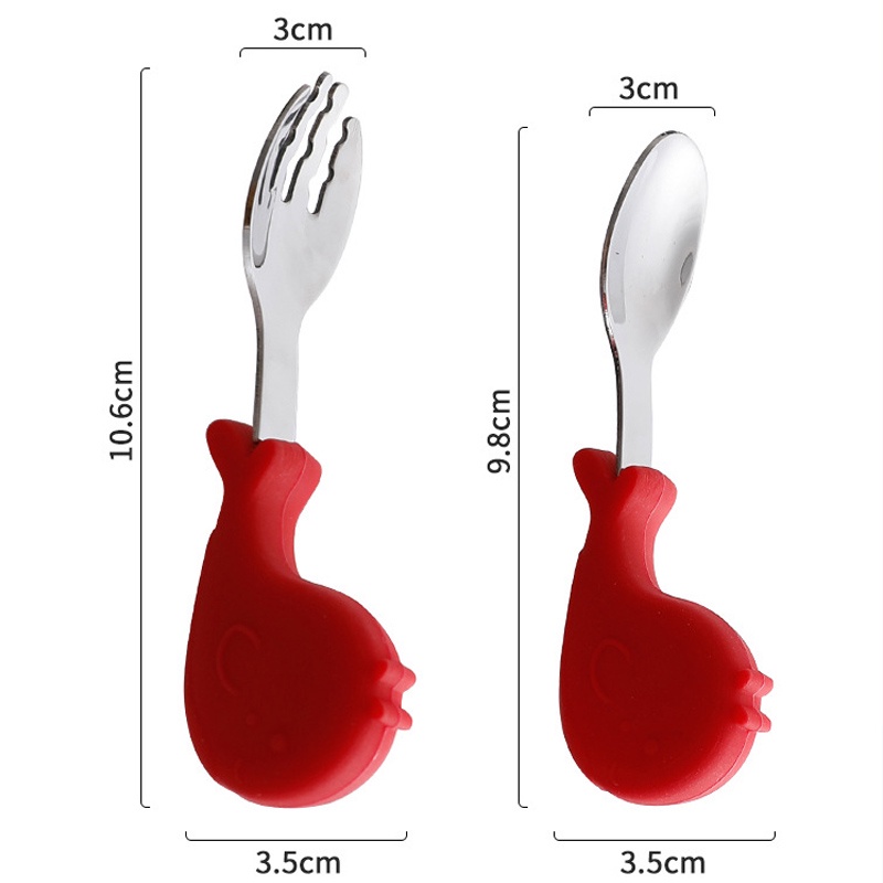 Sendok Training Stainless Steel Sendok makan mpasi bayi gagang silikon latihan makan bayi