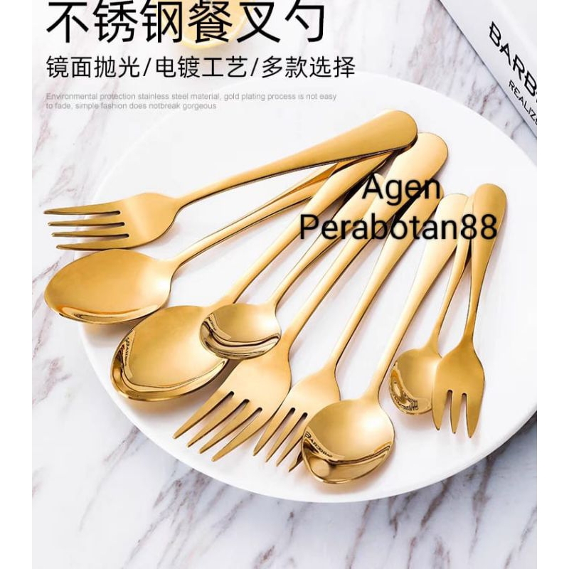 Sendok dan Garpu Makan Tebal Besar HIGH QUALITY/Sendok Gold/Sendok Emas
