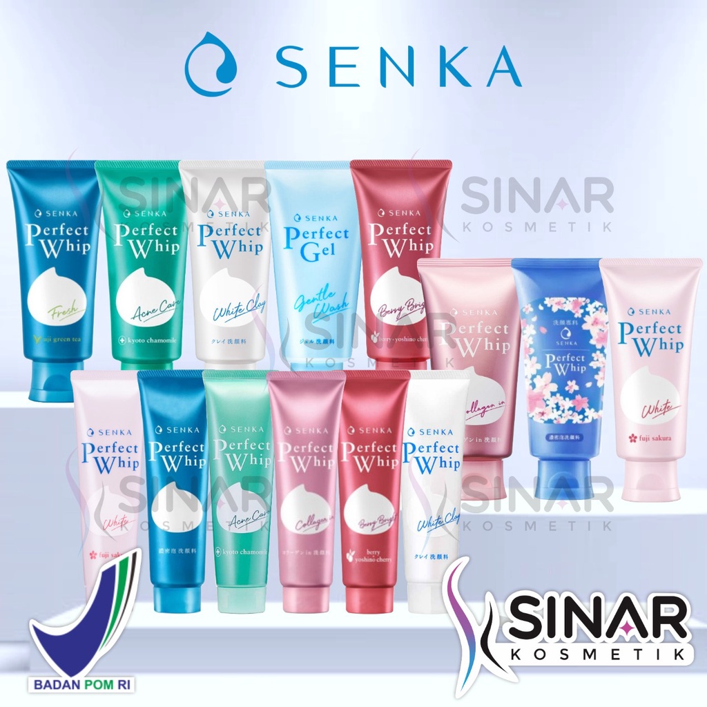 Senka Facial Foam Perfect Whip - White Clay - Fresh Anti Shine - Vibrant White - Sakura - Collagen - Anti Acne - Gentle Wash