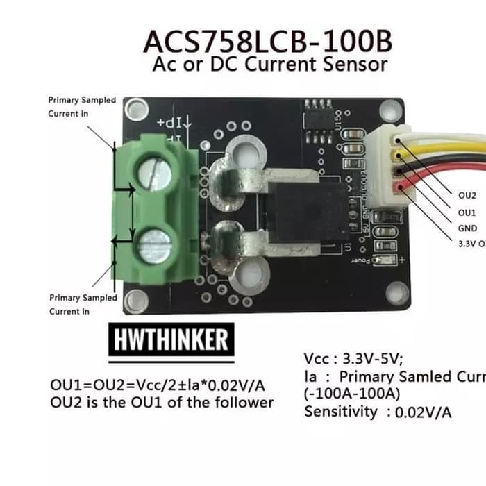 Sensor Arus ACS758 100A AC DC Linear Hall RC Arduino Current 100 A Amp