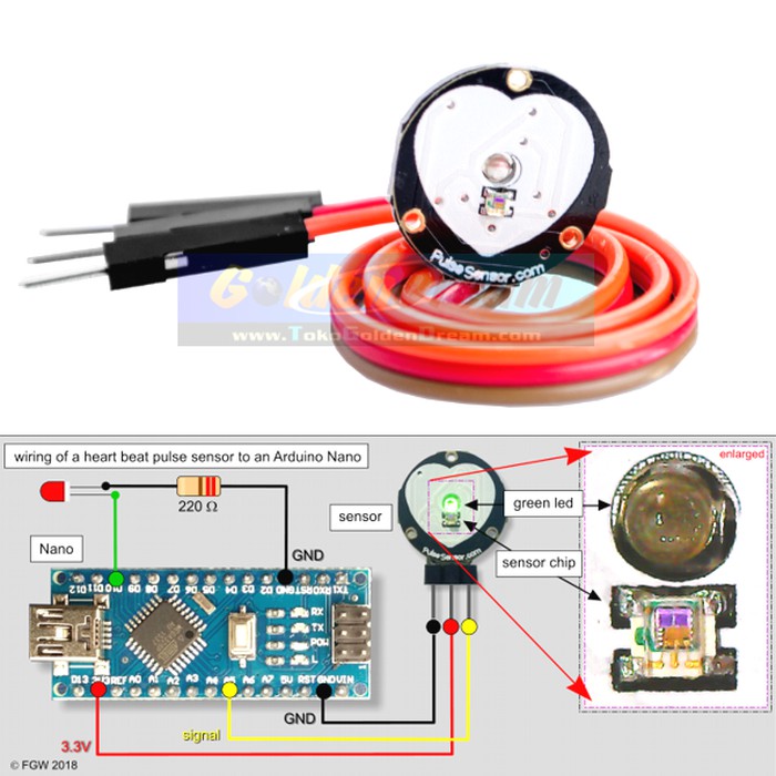 Sensor Detak Jantung Pulse Heart Rate Bio Analog Optical Arduino Mini