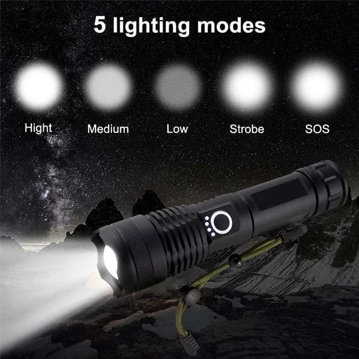 Senter Gunung Super Terang X5000 Bright Zoom Bisa Di Cas Rechargeable - Senter LED XHP50 SWAT Flashlight Paling Terang