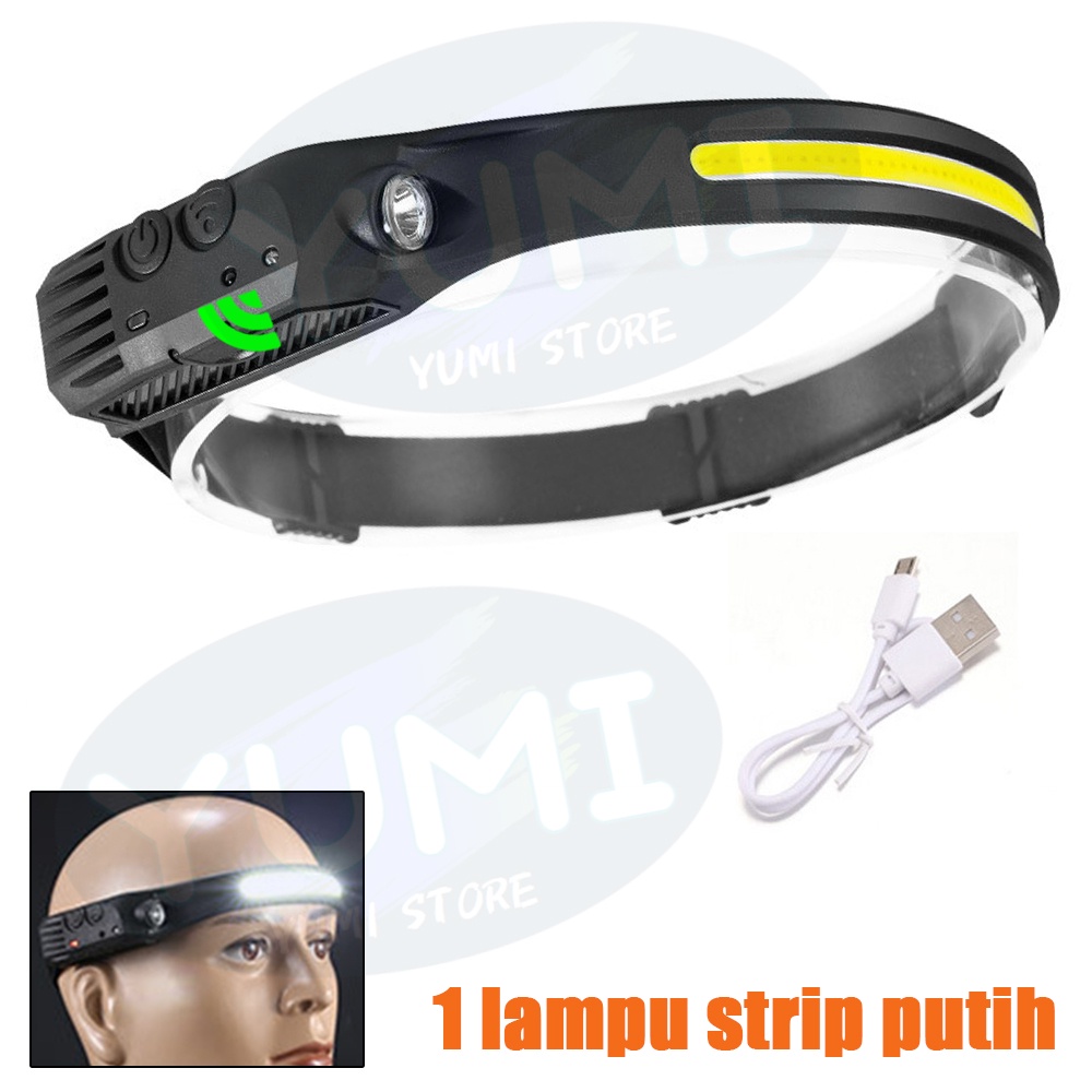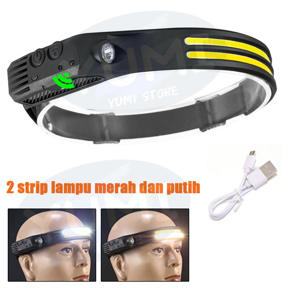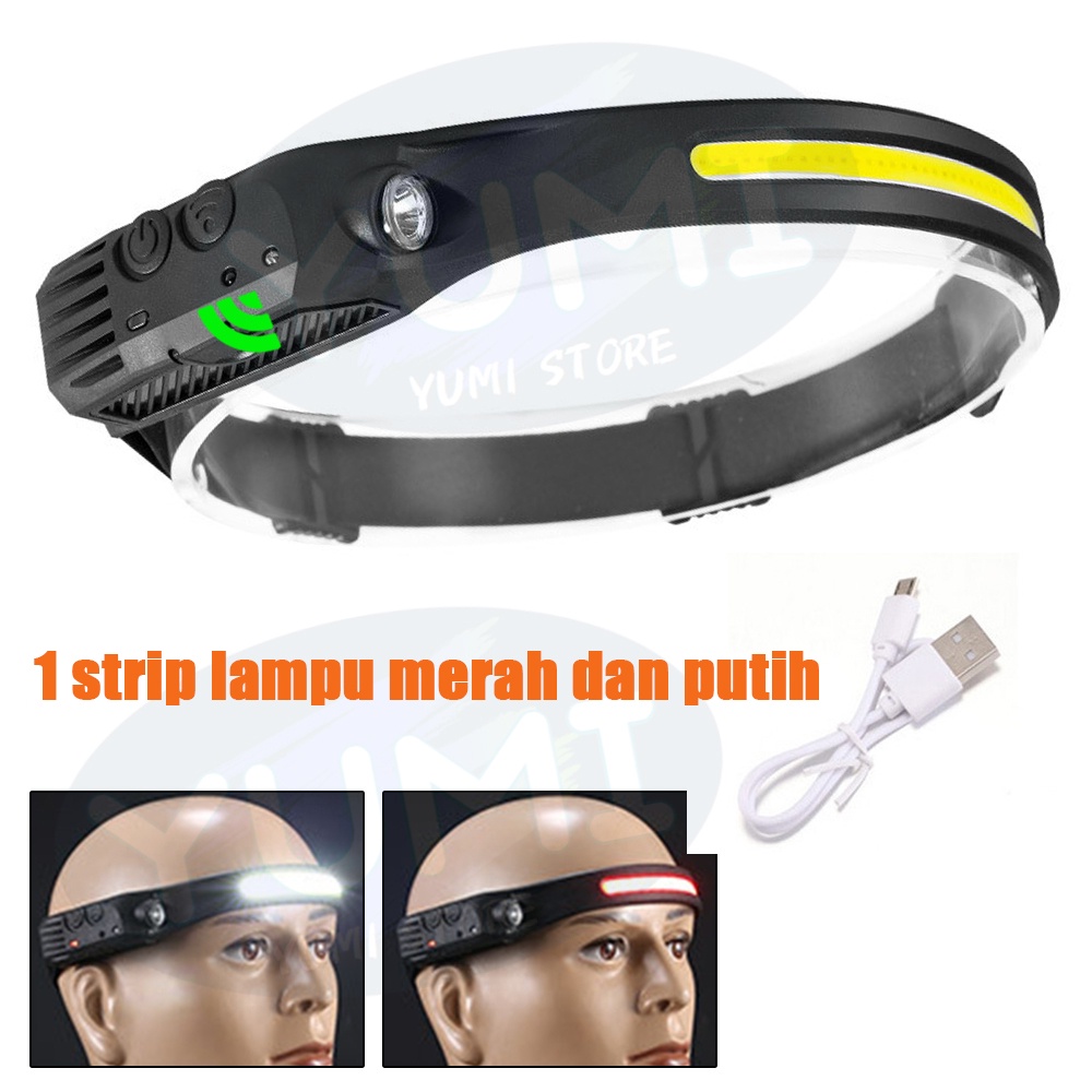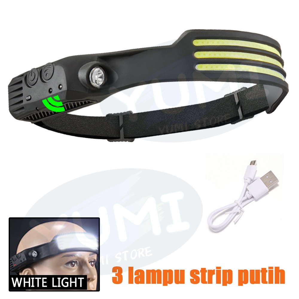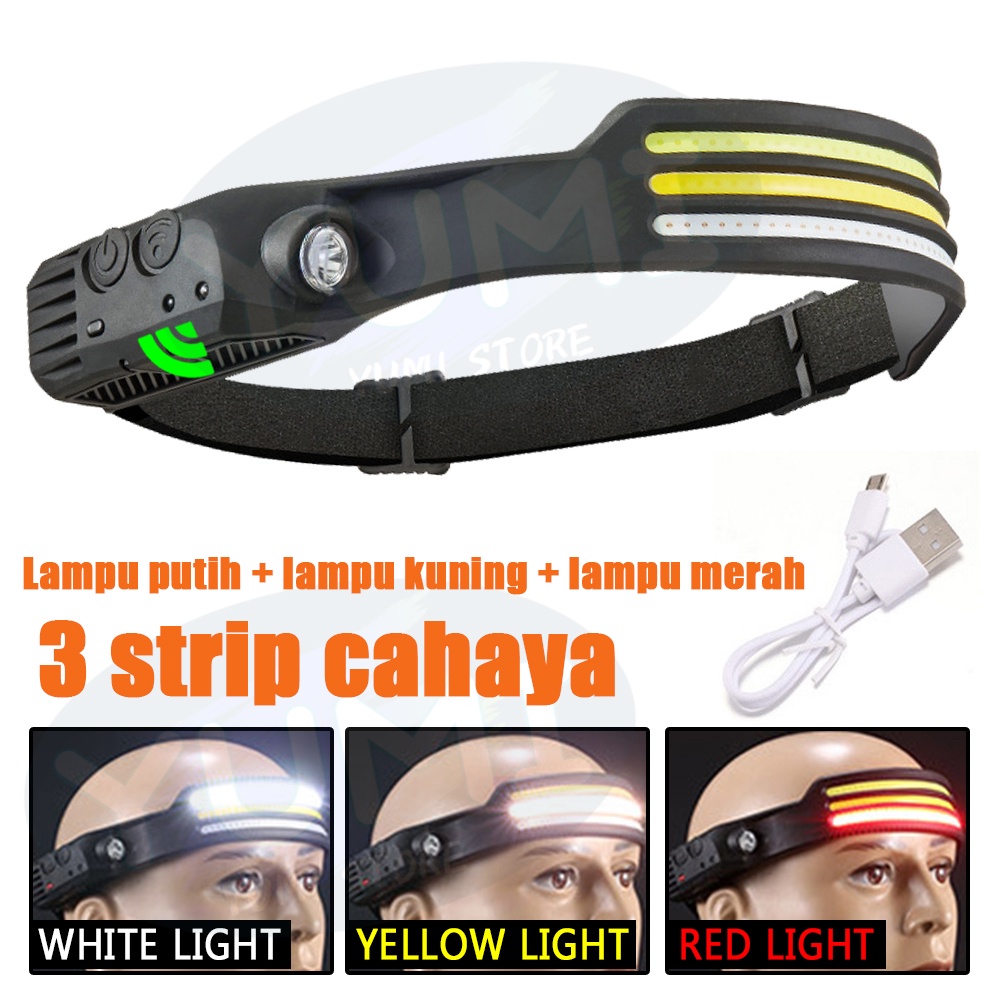 Senter Kepala Headlamp LED/COB Senter Kepala Sensor LED/USB Outdoor Camping Strong Head Lamp/Senter Kepala 3 LED COB + 1 XPE/Headlamp LED Rechargeable/4 MODE CAHAYA COB SENSOR WAVE