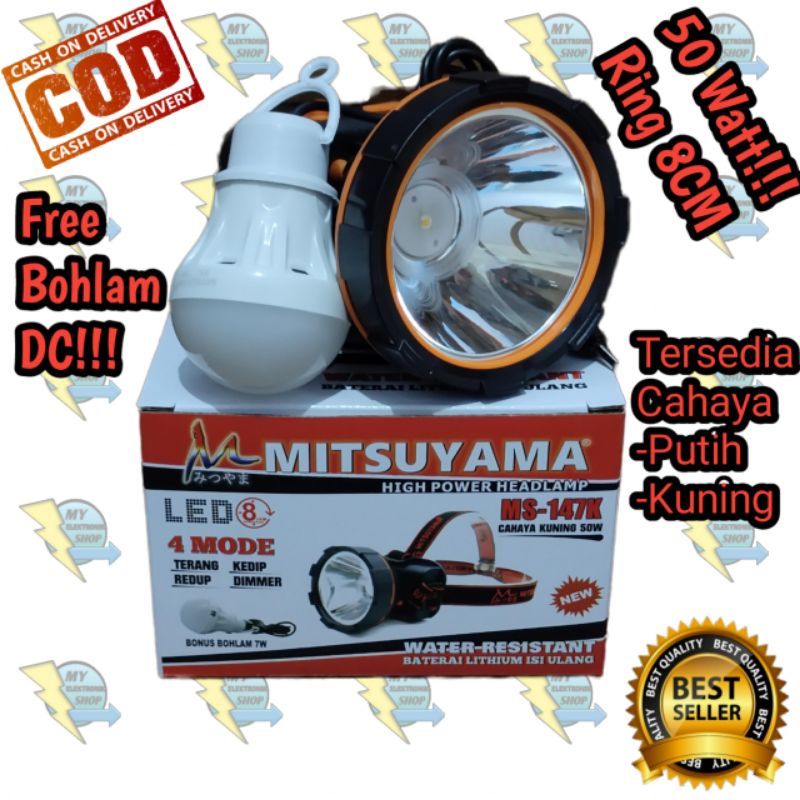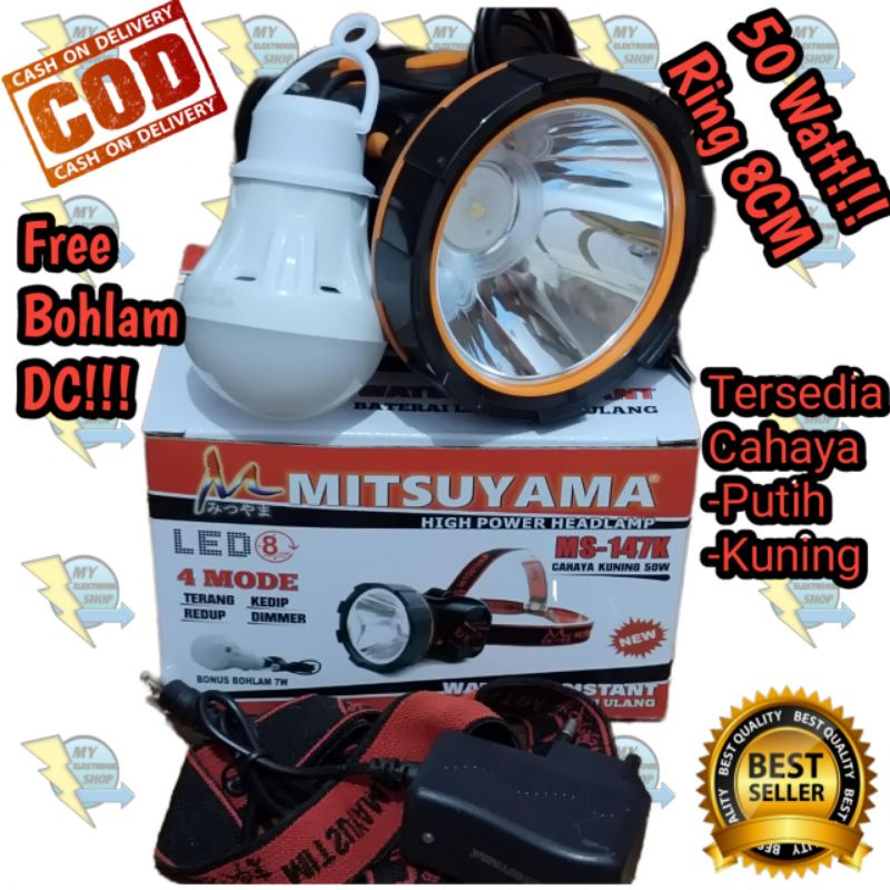 Senter Kepala LED 80 Watt 50 Watt Bonus Bohlam DC Headlamp 80Watt MS-147P Senter Kepala Dimmer MS-182P 80Watt LED Senter Kepala MS-147K 50W Headlamp Outdoor Senter Kepala LED Super Terang