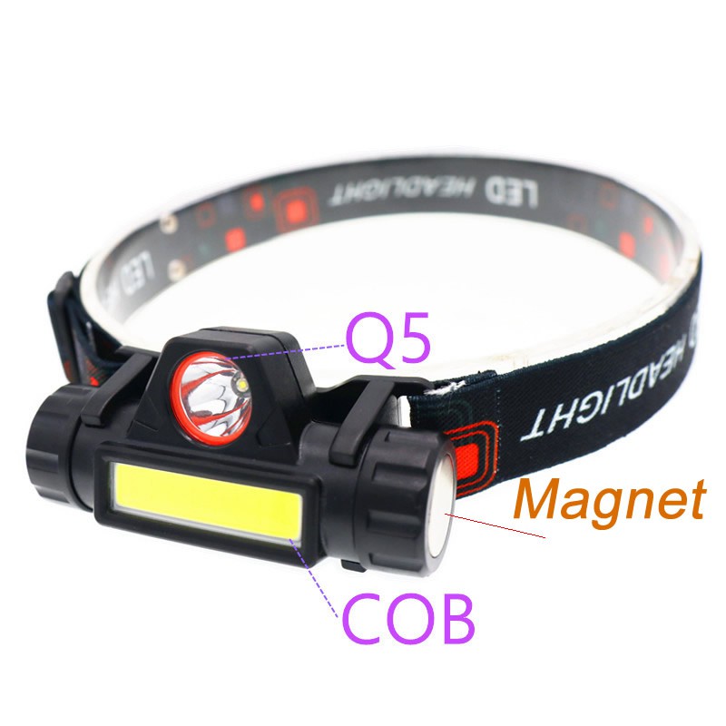 Senter Kepala LED Headlight Headlamp LE022 Flashlight USB Rechargeable Q5 + COB300
