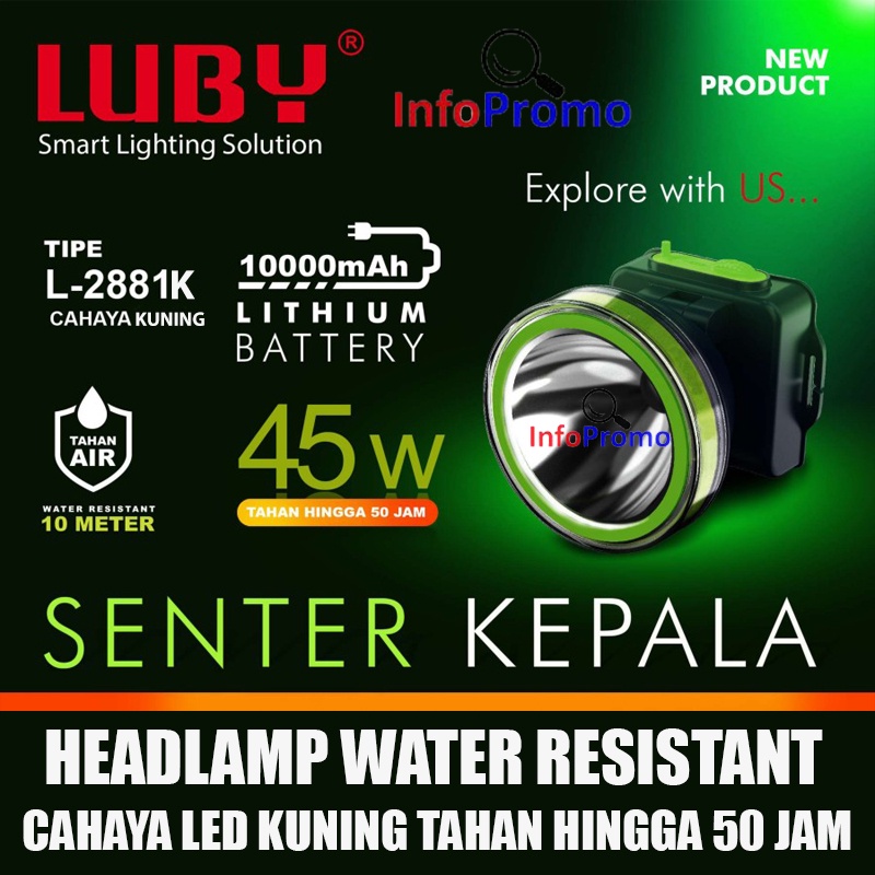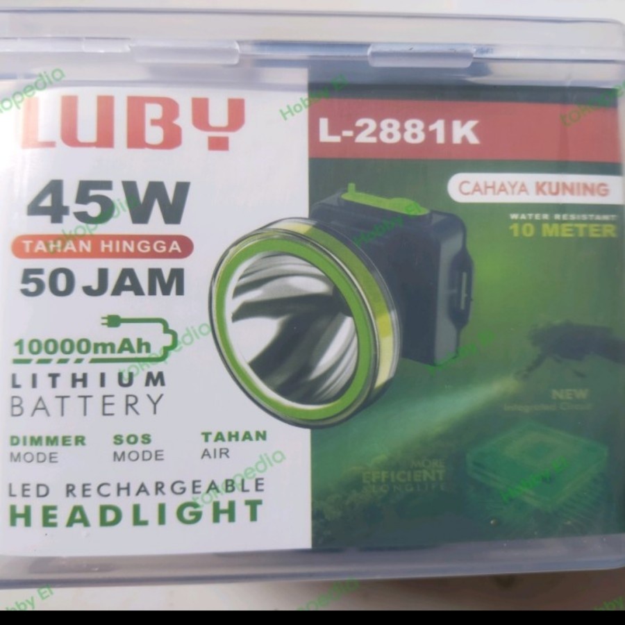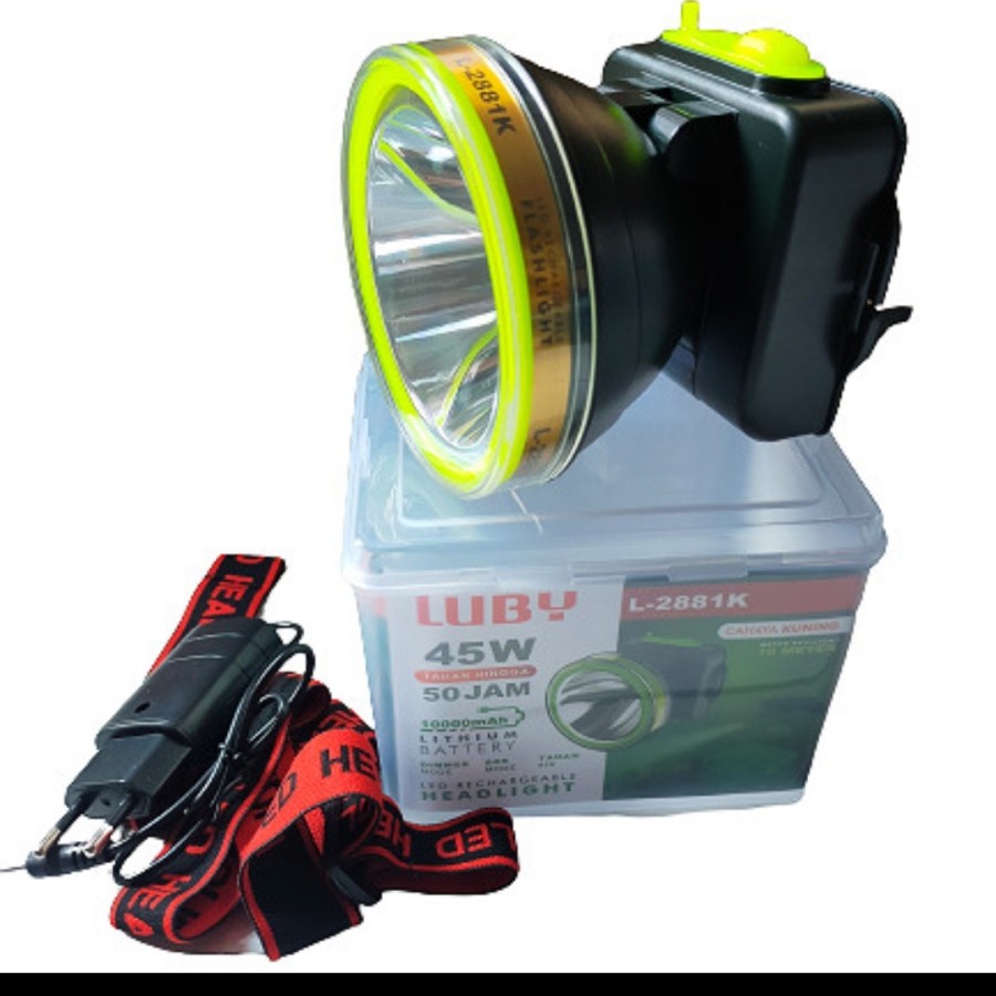 Senter Kepala LED Luby 45 Watt L-2881K Headlamp Cahaya Kuning Charger Original
