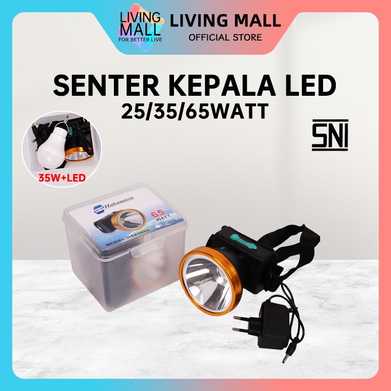 Senter Kepala LED Rechargeable 25W-65W / 35W + Bohlam LED / Senter Kepala Hiking / super terang