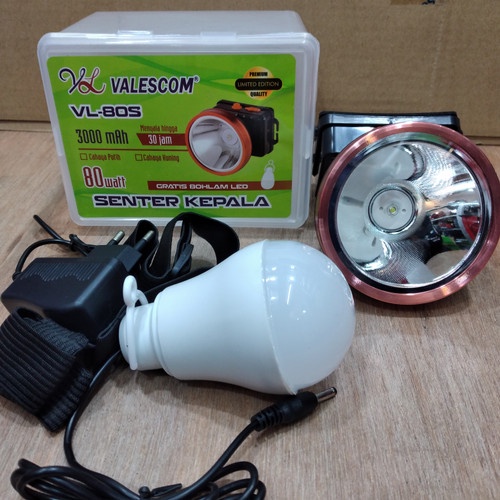 Senter Kepala Valescom 80 Watt VL-80S Cahaya Putih / Kuning + GRATIS Lampu Bohlam LED Tali Strap