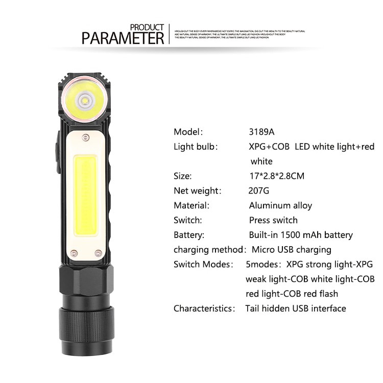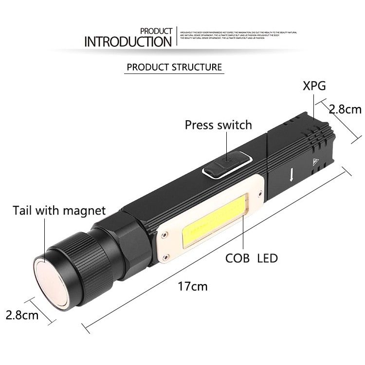 Senter LED 10000 Lumens Super Terang Rechargeable Isi Ulang dengan 2 Chip XPG COB Depan dan Samping