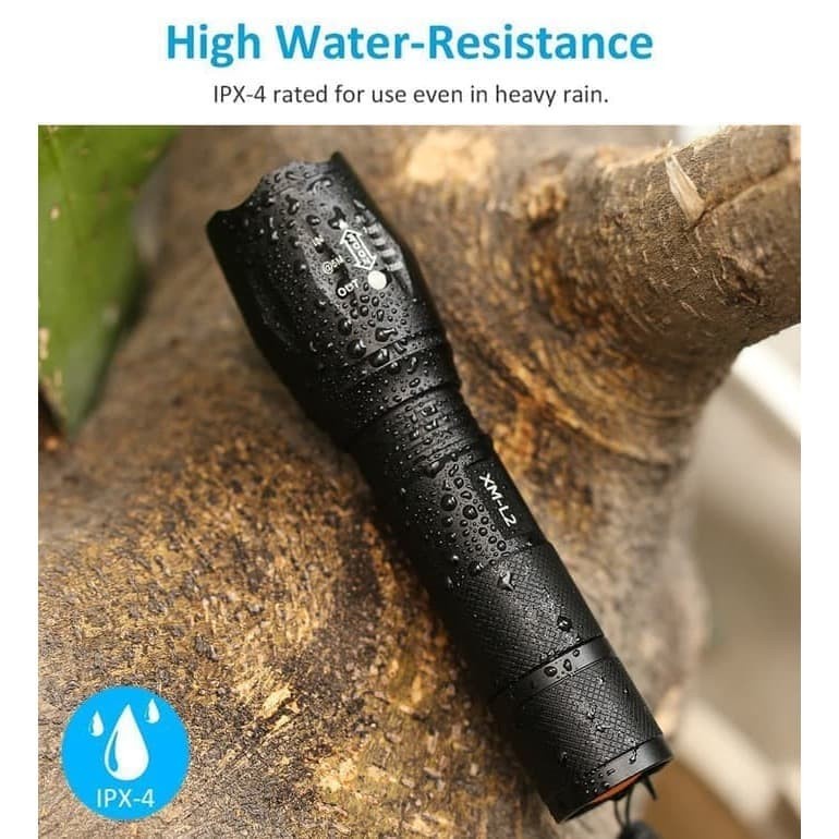 Senter LED Cree Laser Terang E17 XM-L T6 2000 Lumens 18650 BLACK