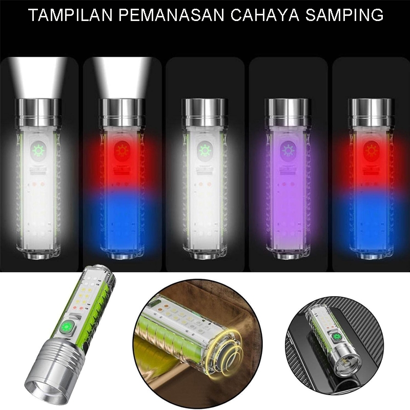 Senter LED Magnet 8 Mode Menyala Dalam Gelap Senter Mini Super Terang Mode Warna Cas Diperkuat Output 30W - 520A