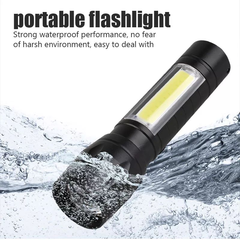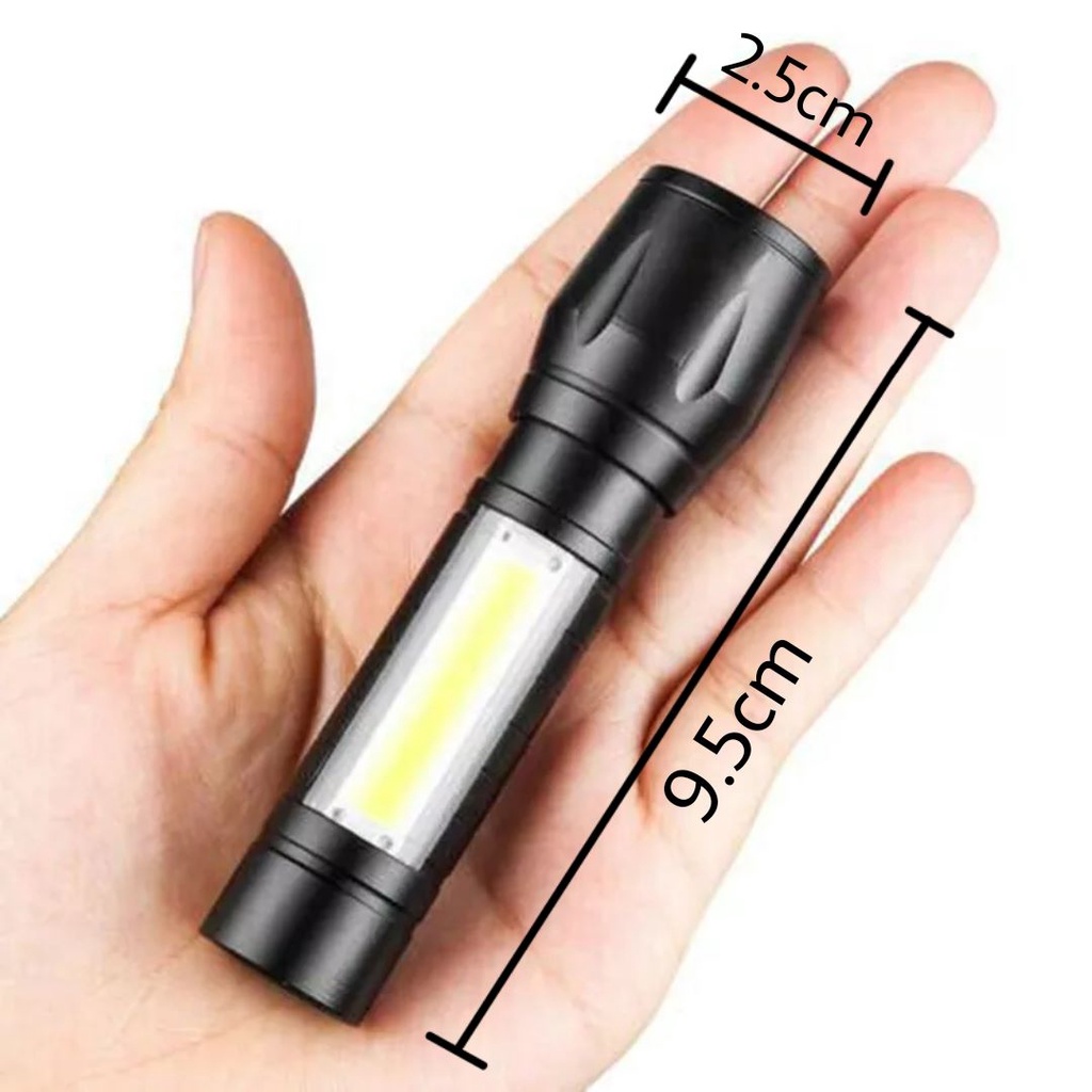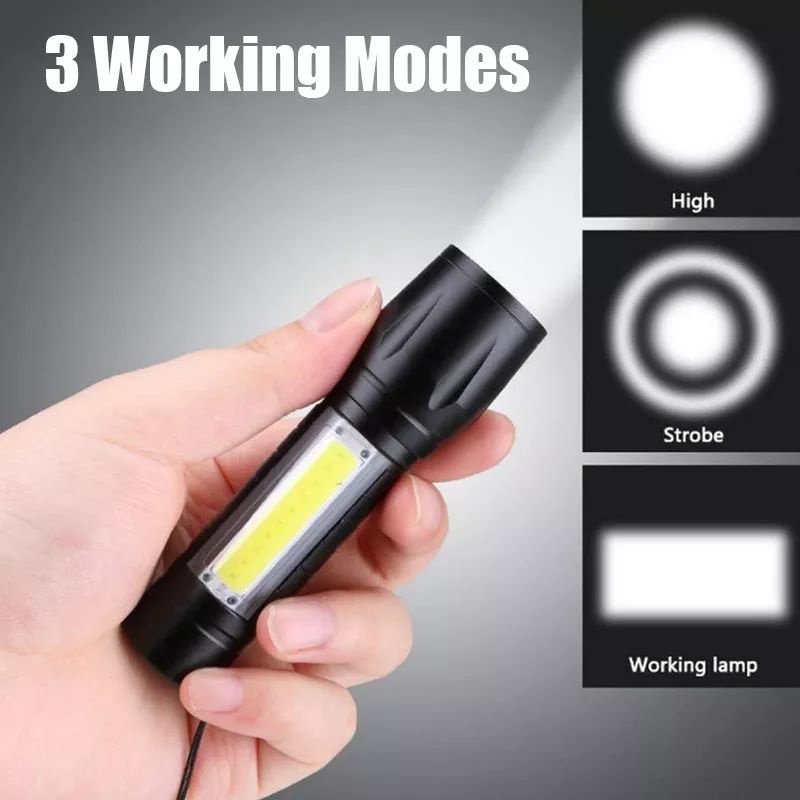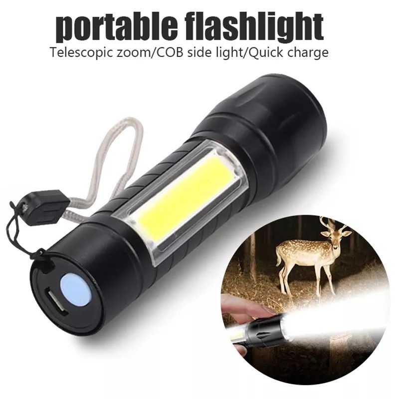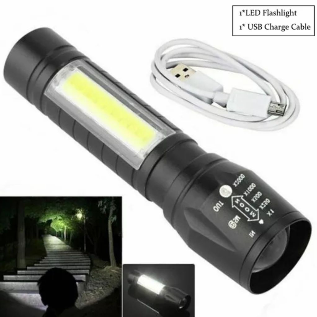 Senter LED Mini Rechargeable USB Charging XPE Zoom & COB Sidelight Bar