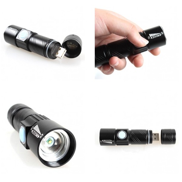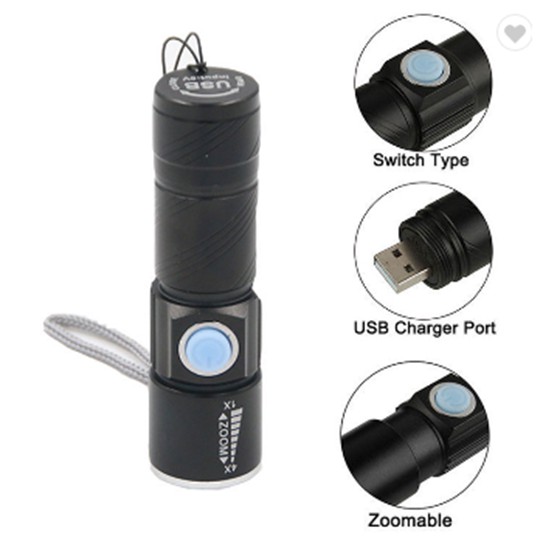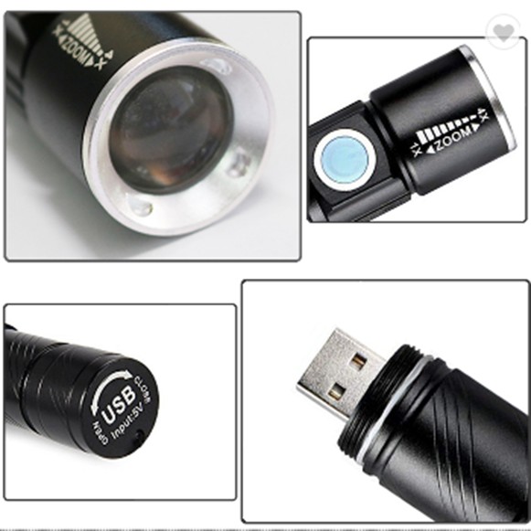 Senter LED Mini USB Rechargeable Flashlight Q5 LED 2000 Lumens Zoomable Built-in Battery
