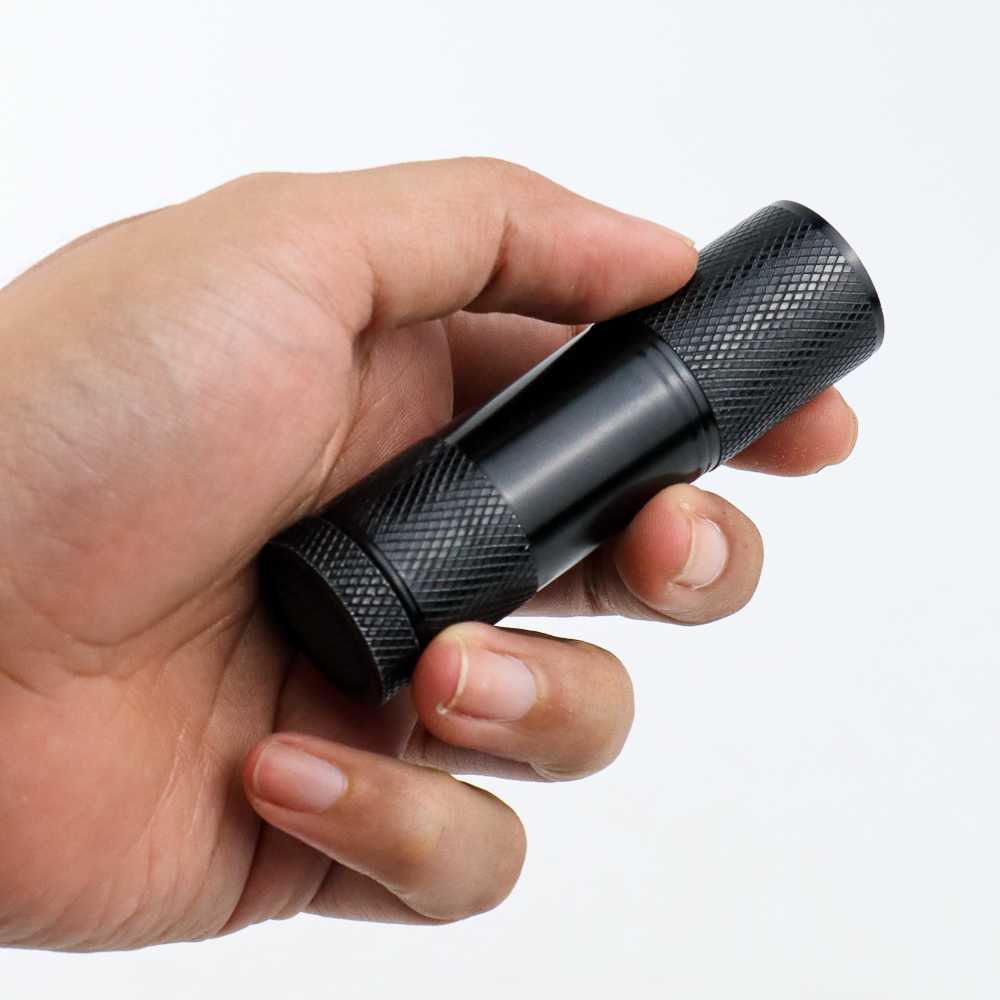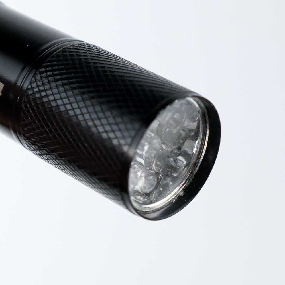 Senter LED Mini Ultraviolet UV 400nm 9 LED / Alat Senter Lampu Cahaya LED UV Ultraviolet Pendeteksi Mendeteksi Detektor Cek Mengecek Tes Tester Keaslian Money Uang Kertas Palsu Asli Dokumen Sidik Jari Bahan Kimia Mini Kecil Kantong Saku Stainess Alumunium