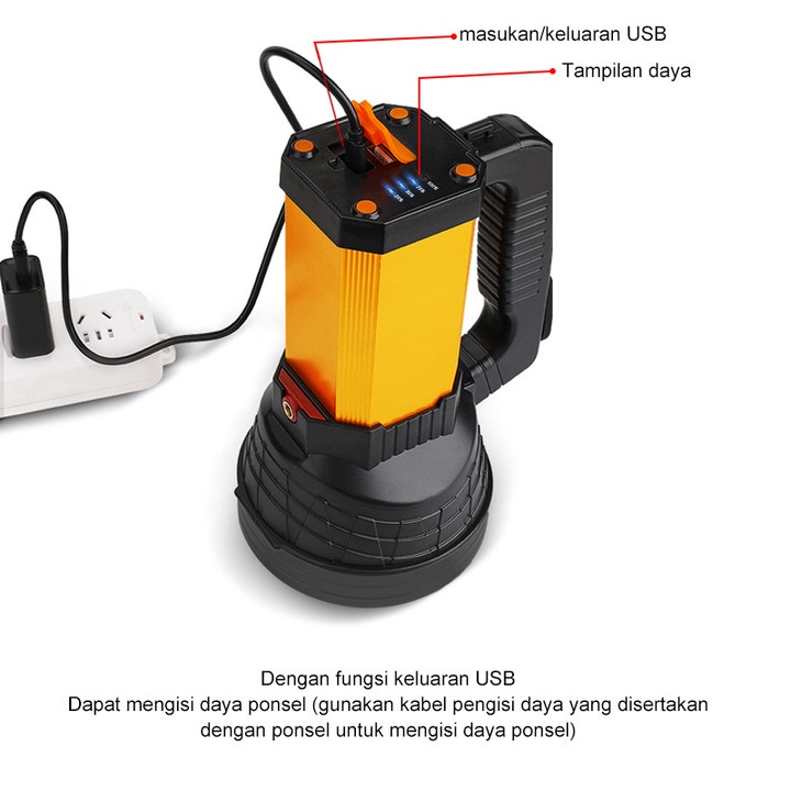 Senter LED Super Terang Jarak Jauh 3 Mode Senter Camping Jumbo Multifungsi 48W IPX6 Waterproof Power 8000 Lumens