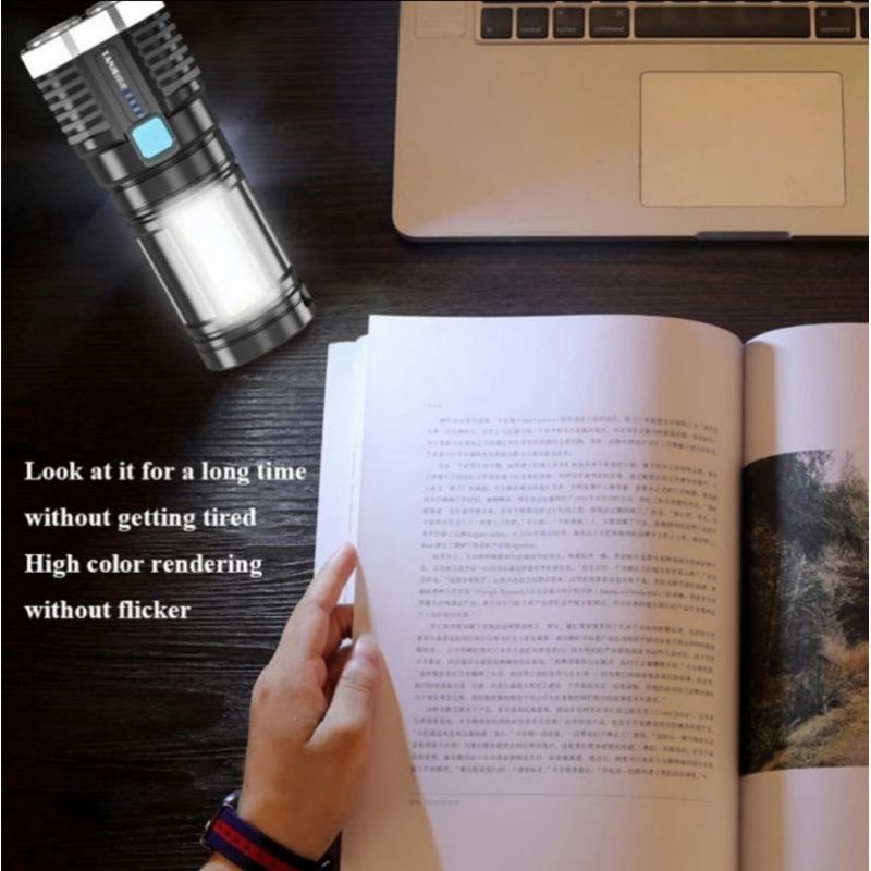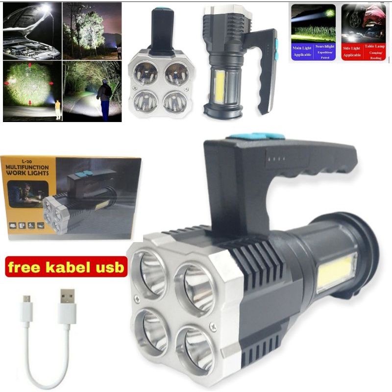 Senter LED Super Terang Rechargeable + COB Senter Led Jarak Jauh + COB 4 LED