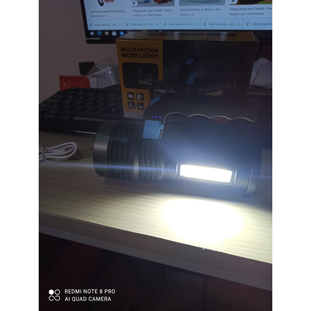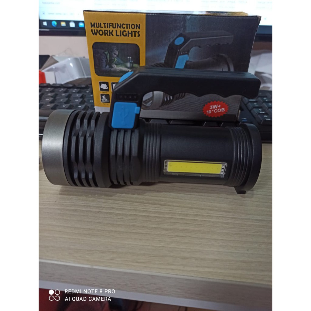 Senter LED Super Terang Rechargeable Plus cob Senter Led Jarak Jauh+cob